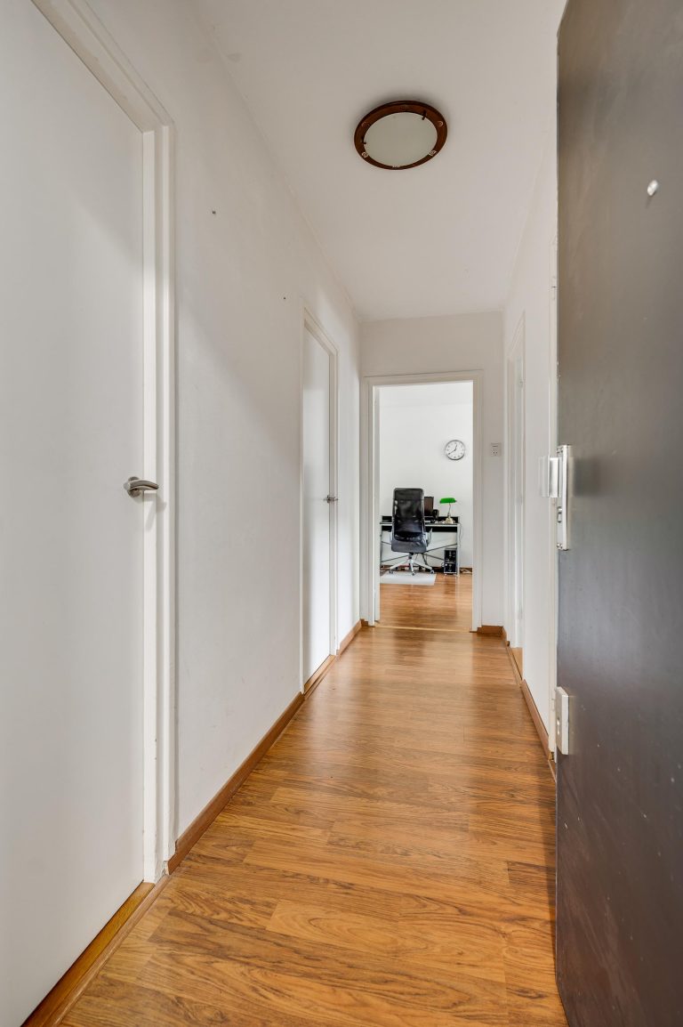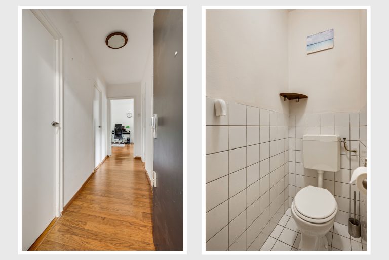 Entree met hal voorzien van laminaatvloer en toiletruimte. De royale woonkamer (ca. 31,4 m²) heeft grote ramen aan zowel de voor- als achterzijde, wat zorgt voor een prettige lichtinval. Vanuit de woonkamer is het balkon aan de voorzijde bereikbaar.