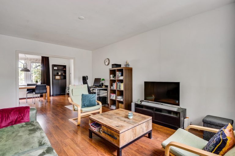 De woonkamer is van oorsprong opgedeeld in twee kamers. Indien gewenst kan de voormalige voorkamer eenvoudig weer worden afgescheiden, bijvoorbeeld als extra slaapkamer, werkkamer of hobbyruimte.