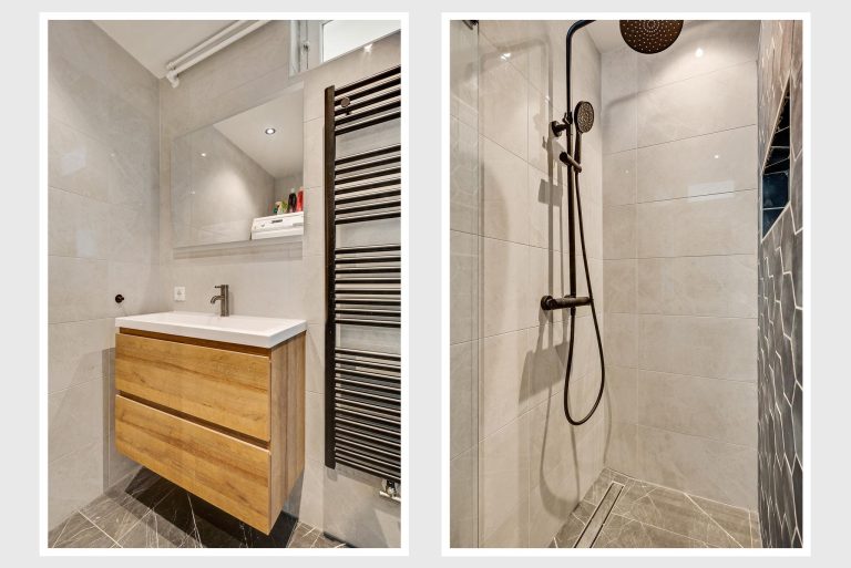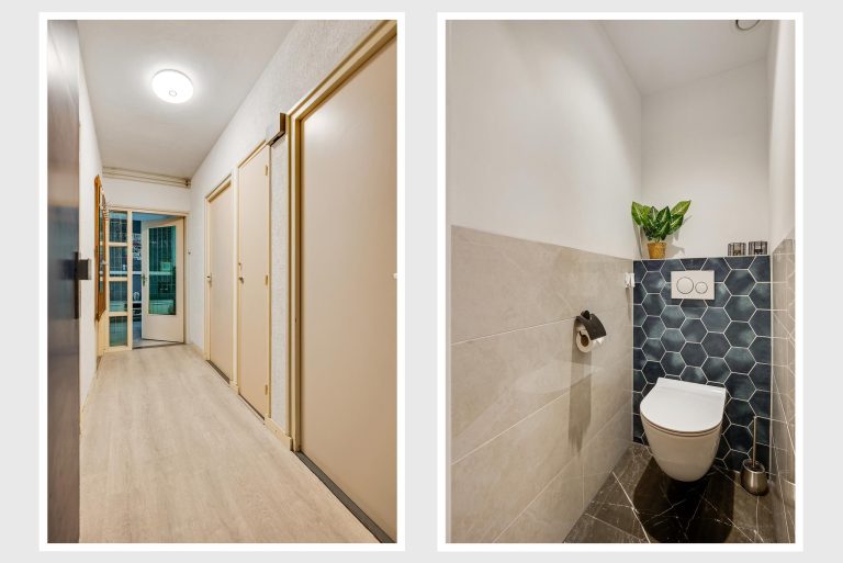 Apart van de badkamer is er via de hal een moderne, deels betegelde toiletruimte te bereiken met hangend toilet.