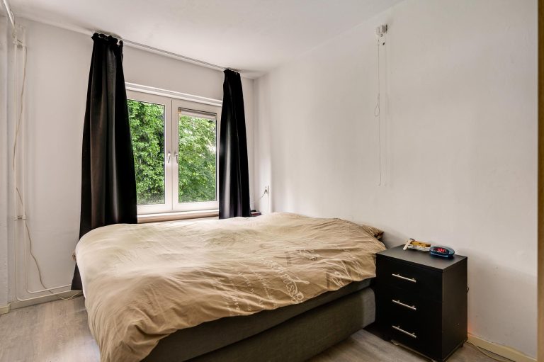 De woonkamer (groot ca. 33 m2) heeft veel lichtinval door de grote raampartij aan voor- en achterzijde en biedt toegang tot de balkons aan de voor- en achterzijde. De gesloten keuken heeft een eenvoudige keukenopstelling met gaskookplaat, oven en koelkast. Aangrenzend aan de keuken bereikt men de badkamer. Deze moderne, geheel betegelde badkamer is uitgevoerd met een inloopdouche met regendouche, badkamermeubel met wastafel, spiegel met verlichting en designradiator. Het appartement heeft twee slaapkamers aan de achterzijde, beiden voorzien van muurkasten. De grote slaapkamer heeft eveneens toegang tot het aan de achterzijde gelegen balkon.