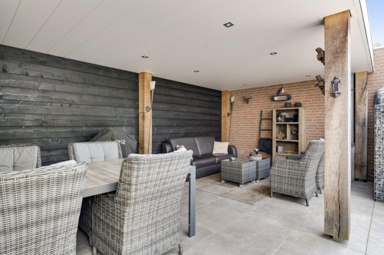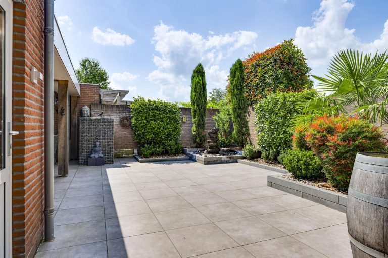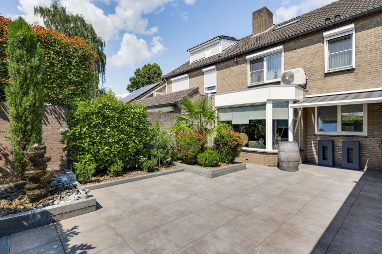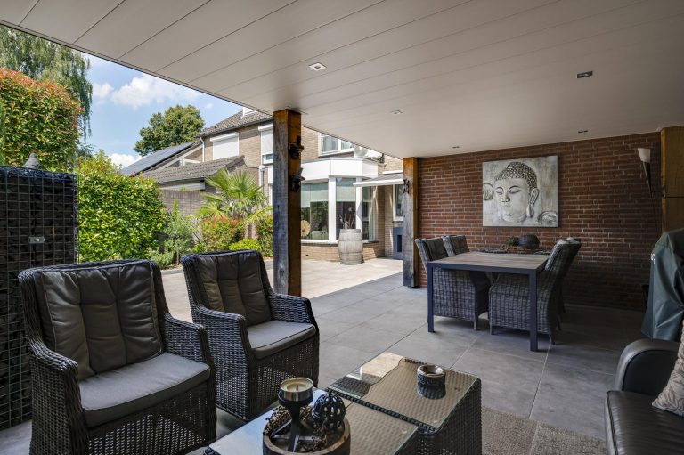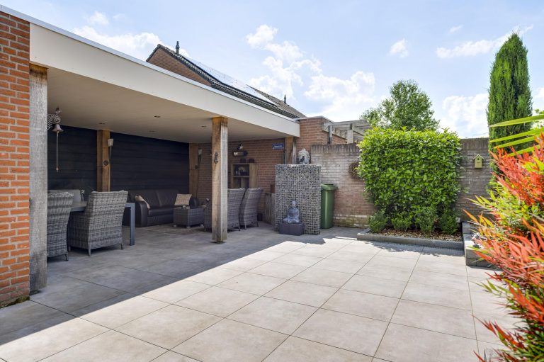 Zowel de voor- als achtertuin zijn op nieuw aangelegd in 2017. De voortuin is door het gebruik van kunstgras onderhoudsarm en biedt een oprit met ruimte voor 2 auto’s. De achtertuin is gelegen op het zonnige zuidwesten, is eveneens onderhoudsarm aangelegd en voorzien van tegels en plantenbakken. De zonneluifel bij de aanbouw, maar vooral de royale douglashouten tuinoverkapping bieden in de zomer de gewenste schaduwplekken. Hier kunt u van vroeg in het voorjaar tot laat in het najaar heerlijk beschut zitten.