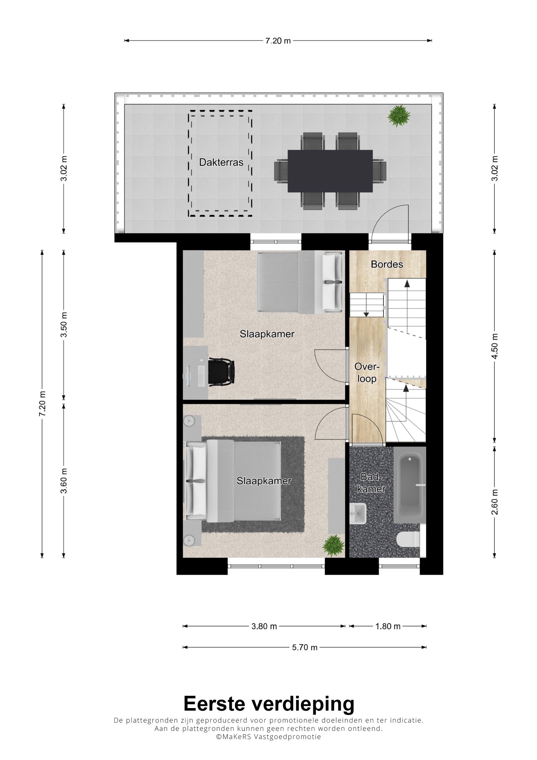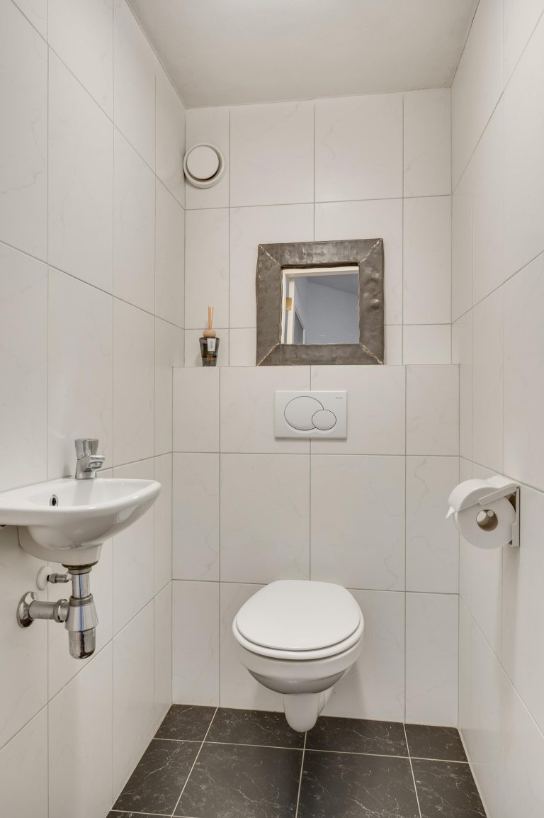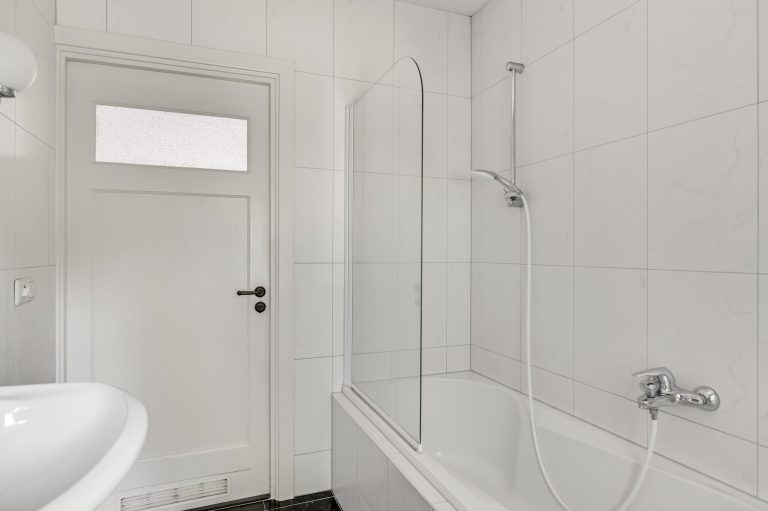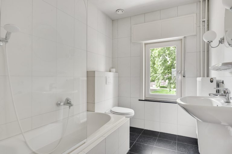 De ruime overloop leidt naar twee royale slaapkamers en de badkamer. De badkamer is voorzien van een ligbad, toilet en wastafel. De slaapkamers zijn afgewerkt met laminaatvloeren en voorzien van rolluiken.