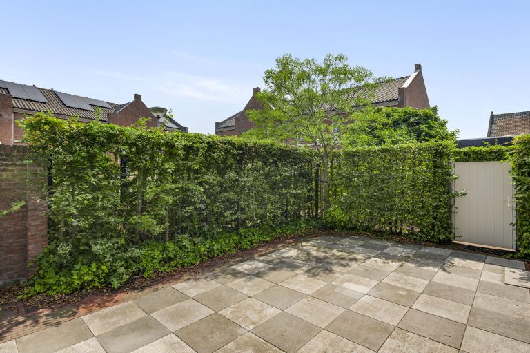 De achtertuin is volledig omheind en onderhoudsvriendelijk aangelegd. Via een poort heeft u toegang tot de gezamenlijke binnenplaats van het achterliggende wooncomplex “Franciscanerhof”, waar zich ook uw eigen overdekte parkeerplaats bevindt. De binnenplaats is afgesloten met een elektrische toegangspoort en maakt deel uit van een VvE (€ 35,- p/m).