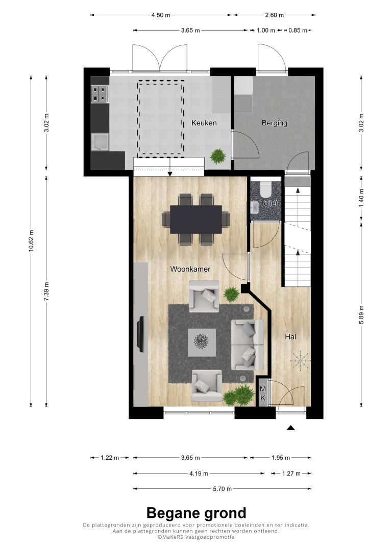 De royale woonkamer heeft een massief eiken vloer en een strak afgewerkte wand- en plafondafwerking. Vanuit de woonkamer loopt u via een klein niveauverschil naar de open keuken. Deze is uitgerust met een lichtstraat, inbouwapparatuur (gasfornuis, oven, koelkast, vaatwasser, afzuigkap) en biedt ruimte voor een grote eettafel. Openslaande deuren verbinden de keuken met de achtertuin. Vanuit de keuken bereikt u tevens de berging met witgoedaansluitingen en de fraaie gewelfde kelder.