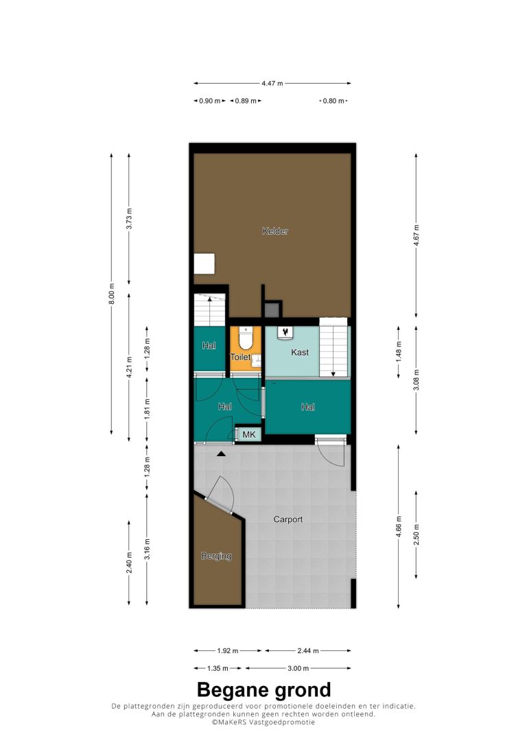 Entree aan de voorzijde onder de carport, onder de carport bevindt zich tevens een fietsenberging. Hal met meterkast, toiletruimte en trapopgang naar 1e niveau. Portaal/berging met toegang naar de provisiekelder.