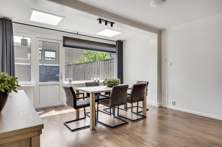 Het type splitlevel zorgt voor een speels karakter, waardoor elke ruimte een eigen sfeer heeft en toch met elkaar in verbinding staat. Alle vloeren in de woning zijn keurig afgewerkt met moderne laminaat en alle wanden en plafonds zijn afgewerkt in lichte kleurstellingen. Daarnaast is de woning grotendeels voorzien van rolluiken.
