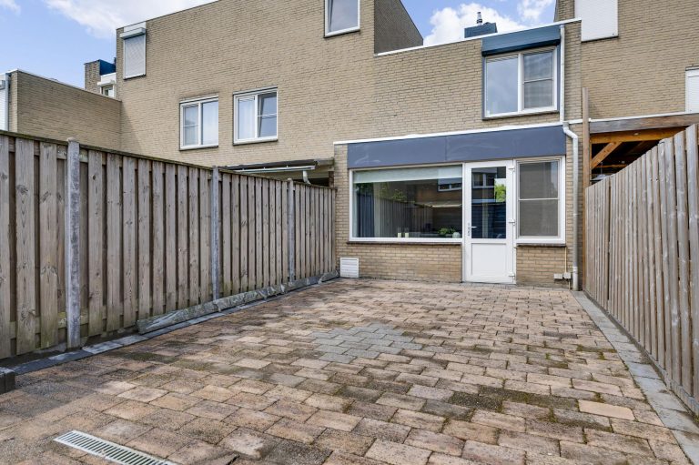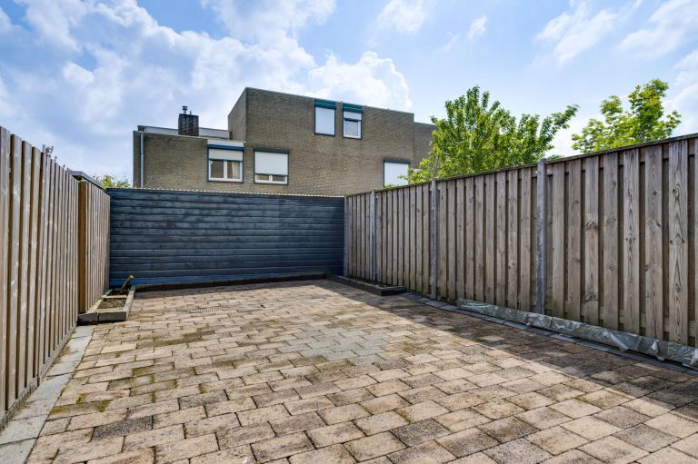 De op het oosten gelegen achtertuin (ca. 9 bij 5m) is geheel omsloten en onderhoudsvriendelijk aangelegd.