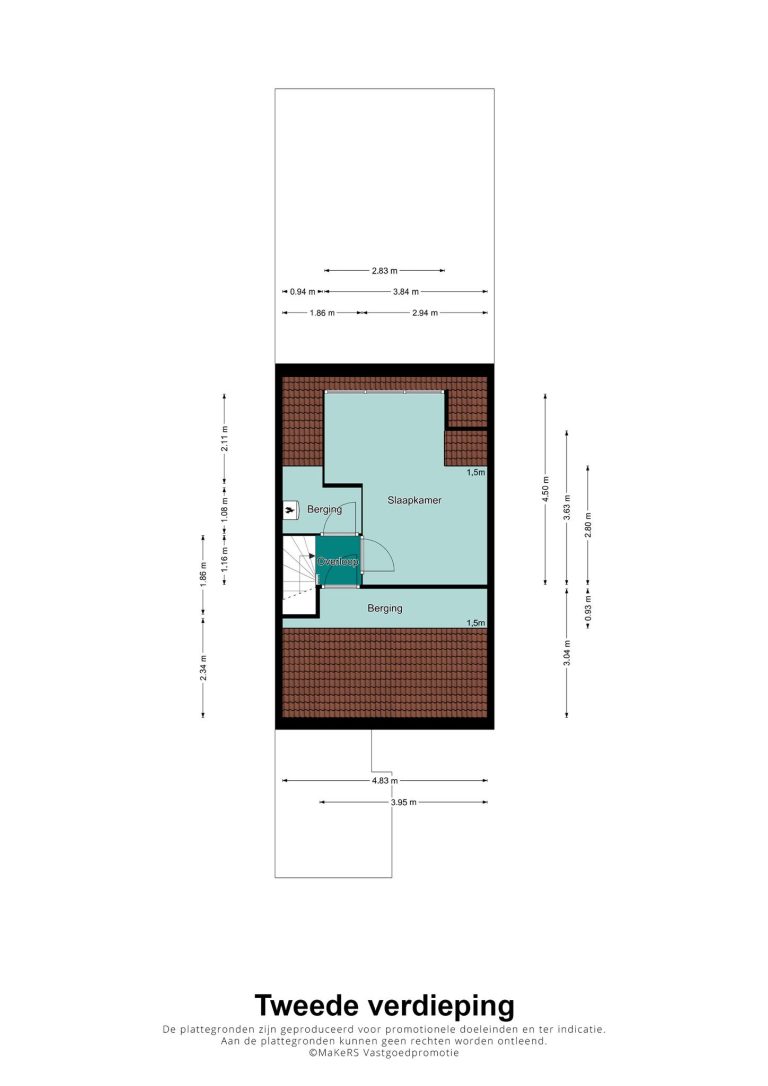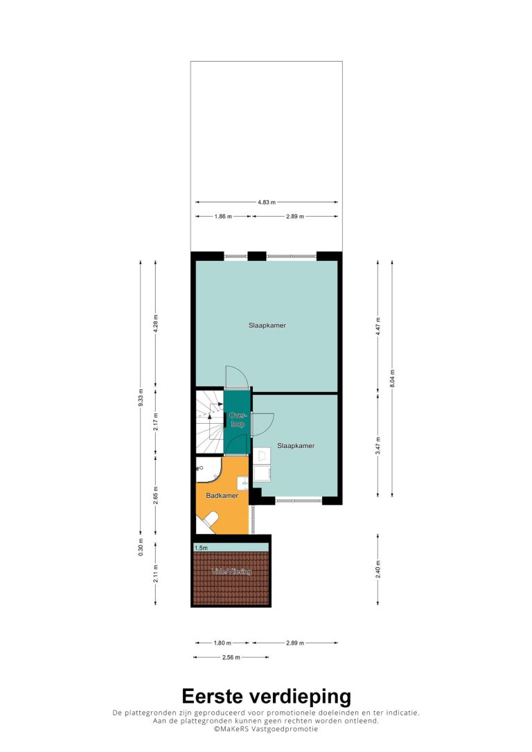Vanuit de overloop heeft u de toegang tot 2 royale slaapkamers (voorheen 3) en de badkamer. Slaapkamer 1, groot ca. 3.45 bij 2.90m, is gelegen aan de voorzijde. Slaapkamer 2, groot ca. 4.8 bij 4.35m, is gelegen aan de achterzijde. Hier zouden evt. weer 2 slaapkamers van gemaakt kunnen worden. De badkamer is geheel betegeld en voorzien van badkamermeubel, toilet en douchecabine.