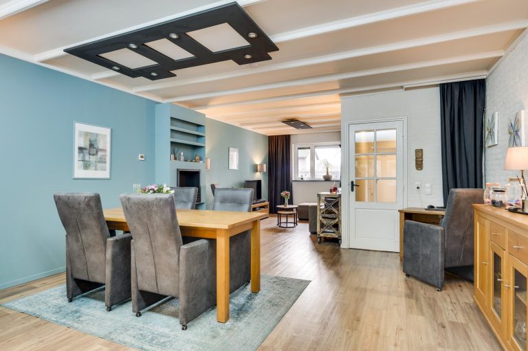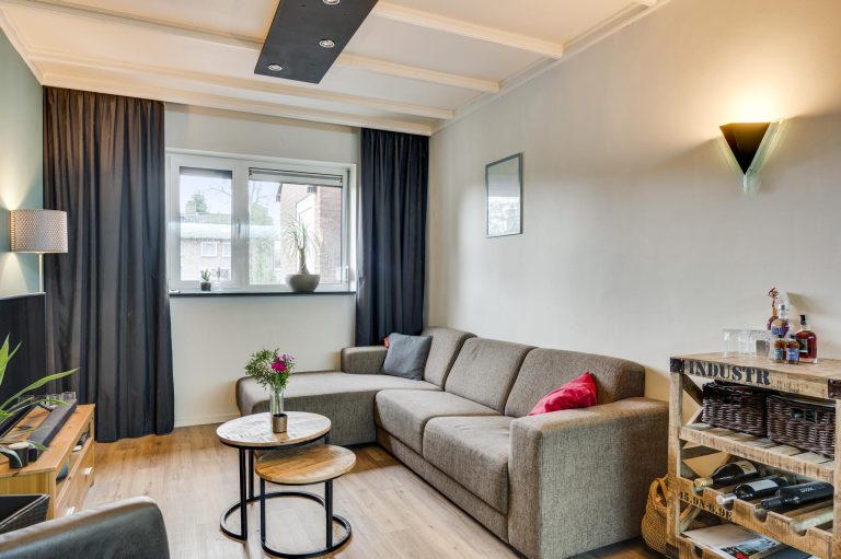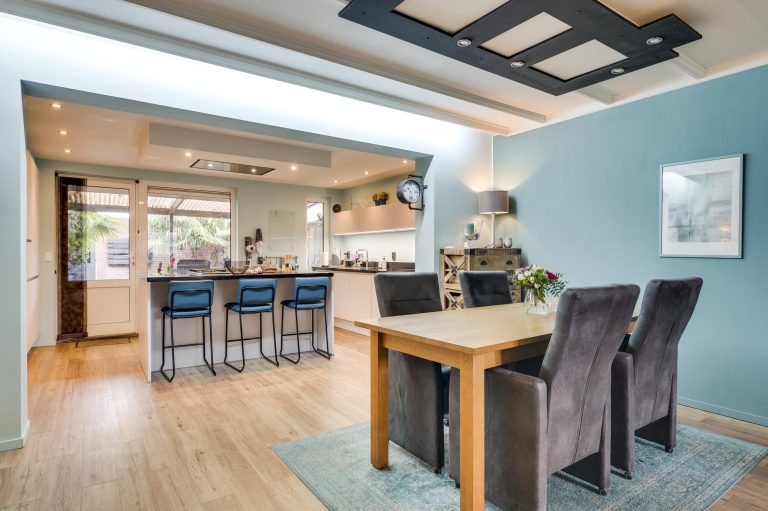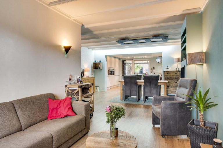 Aan de voorzijde van de woning bevindt zich de zithoek. Aansluitend het eetgedeelte dat in open verbinding staat met de aangebouwde keuken. Door de open verbinding met het eetgedeelte is deze keuken de ideale plek voor iemand die graag kookt voor vrienden en familie.