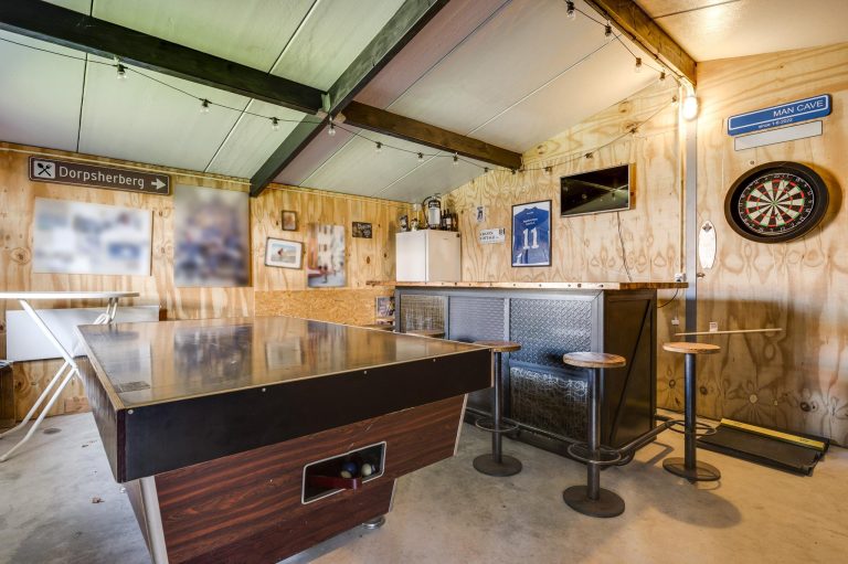 Royaal bijgebouw van maar liefst ca. 34m2! voorzien van dak- en muurisolatie, betonvloer en elektra. Dit bijgebouw is nu opgesplitst in een mancave en een berging, maar kan ook prima worden gebruikt als werk- of hobbyruimte.