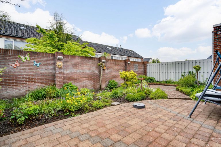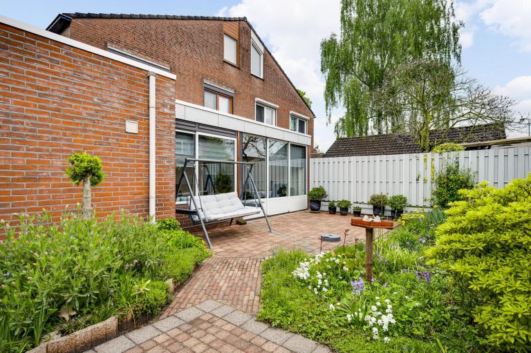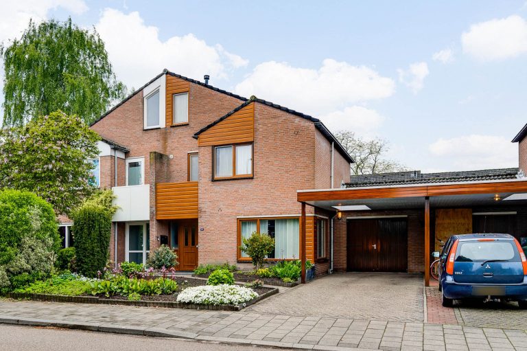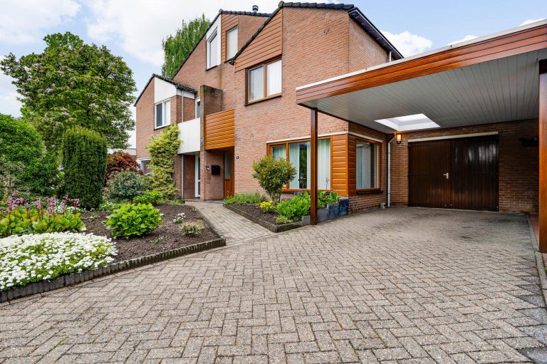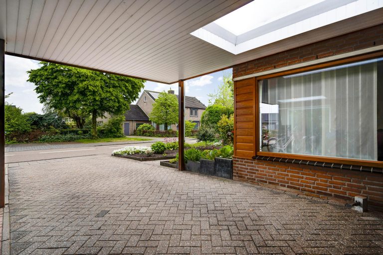 Zowel de voor- als achtertuin zijn netjes en verzorgd aangelegd. De ruime oprit is deels overdekt door de carport en biedt ruimte voor 2 auto’s.