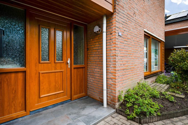 Via het tuinpad bereikt u de in de voorgevel gelegen overdekte entree.