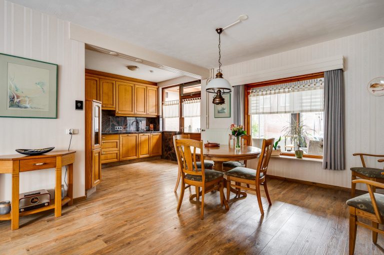 + woonkamer met open keuken en aangebouwde serre