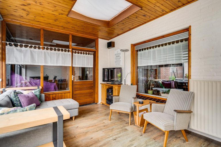 Vanuit de keuken is de aangebouwde serre (oorspronkelijk gebouwd als overkapping) bereikbaar. Deze ruime serre (3,2m bij 6,6m) is voorzien van pvc-vloer, glazenwand met schuifdeuren en 2 daglichtkoepels.