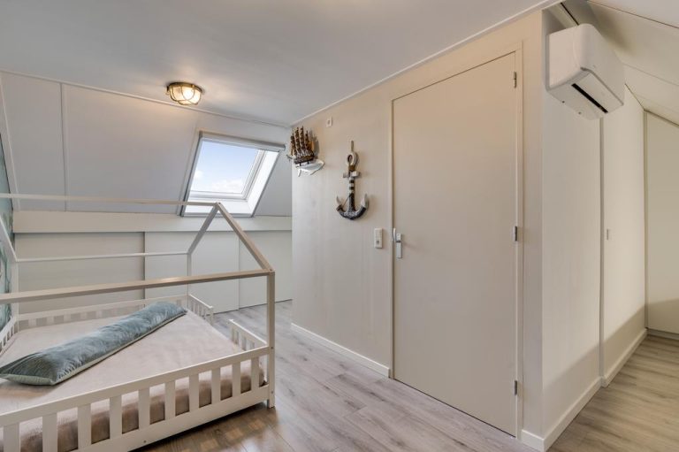 Middels vaste trap is de tweede verdieping bereikbaar. Deze verdieping is opgedeeld in een overloop, wasruimte en de derde slaapkamer. Hier bevindt zich de tweede airco installatie ten behoeve van verwarming en koeling van deze verdieping. De slaapkamer is volledige afgewerkt met vaste kasten en een werkplek.