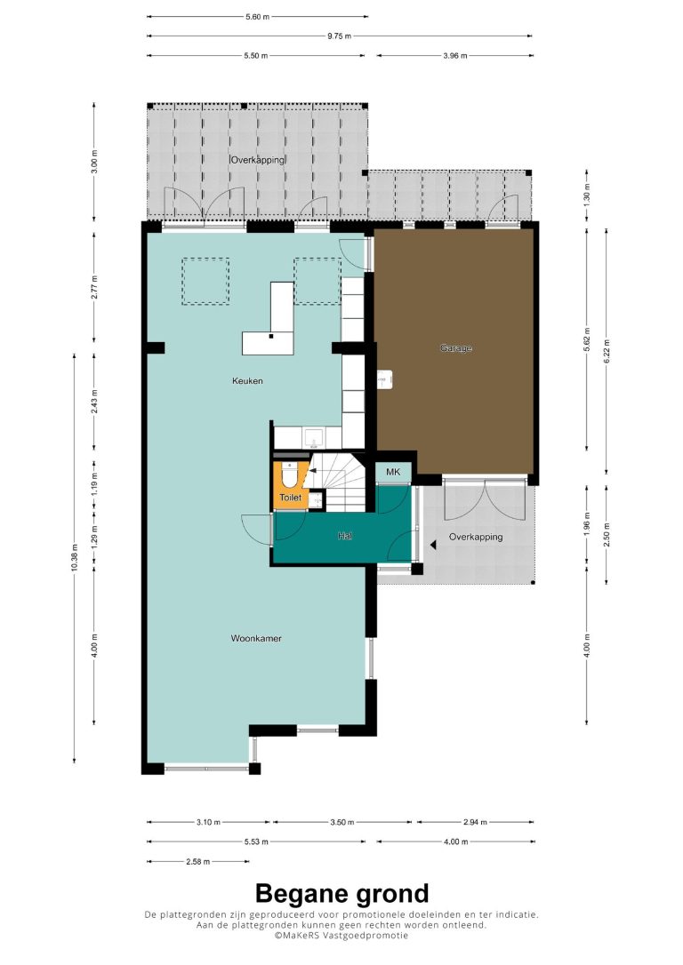 + inpandig bereikbare garage (ca .6 x 4 m)