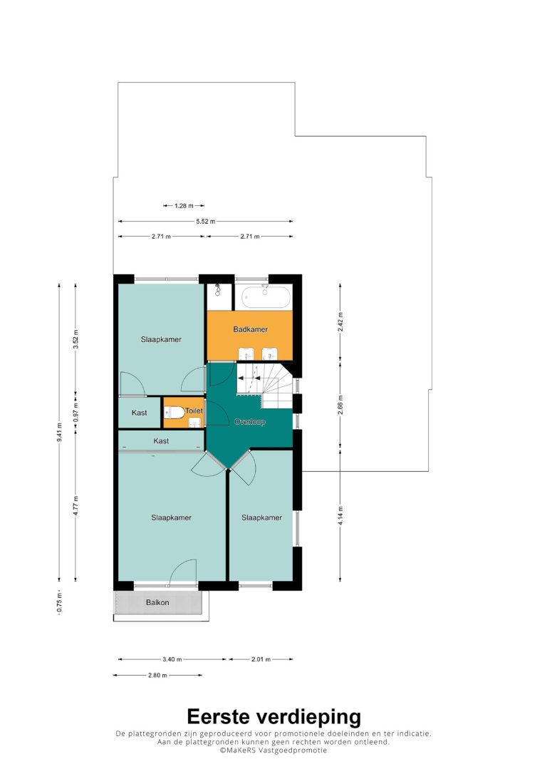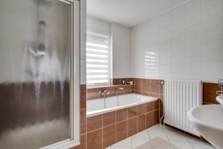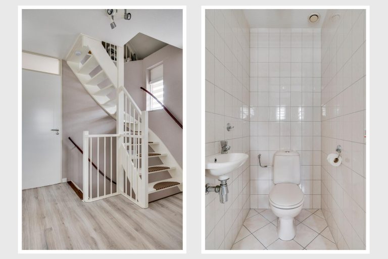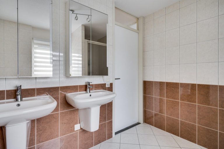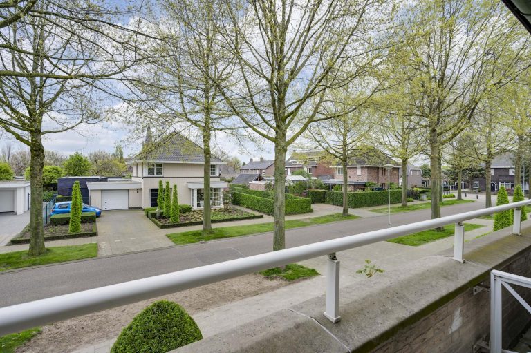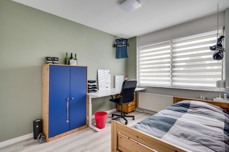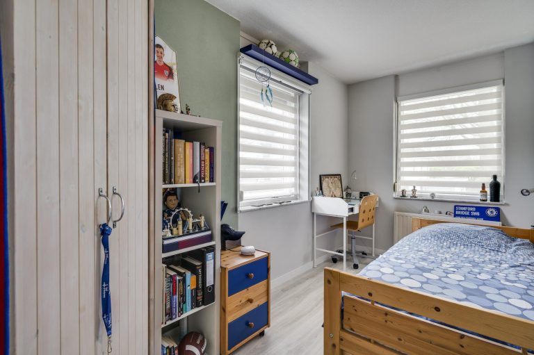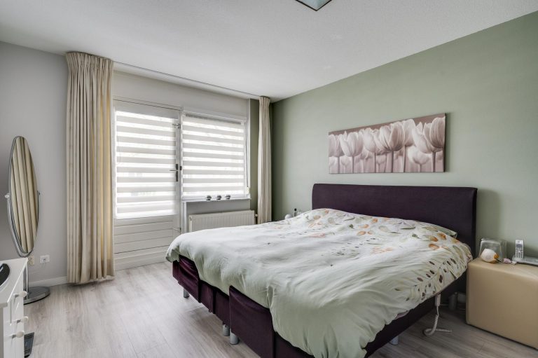 Royale overloop. De ruime ouderslaapkamer (ca. 4,75 x 3,40m) met kastenwand is gelegen aan de voorzijde van de woning en biedt toegang tot het aan de voorzijde gelegen balkon. Daarnaast 2 kinderkamers van resp.ca. 4 x 2m (gelegen aan de voorzijde) en 3,50 x 2,70m met inbouwkast (gelegen aan de achterzijde). De ruime geheel betegelde badkamer is voorzien van ligbad, douchecabine, dubbele wastafel en radiator. Pluspunt is de separaat gelegen, geheel betegelde toiletruimte met fonteintje.