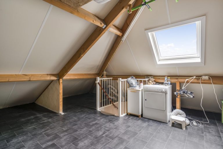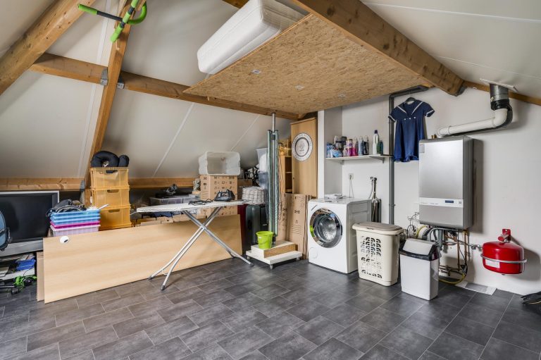 Via vaste trap bereikbare zolder met dakraam, aansluiting voor wasmachine / droger en de opstelling van de combi cv-ketel. Hier kan een vierde slaap-/ hobby- of werkkamer worden gerealiseerd. Door het plaatsen van een dakkapel staat er nog extra ruimte.