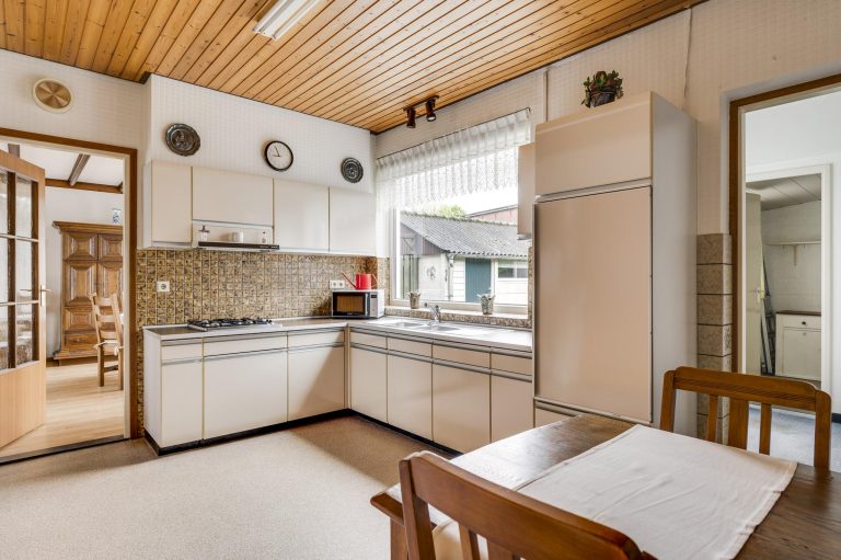 Aan de achterzijde van de woning, bereikbaar vanuit de keuken, bevindt zich nog een bijkeuken, met geiser ten behoeve van warmwater en deur naar de achtertuin. Tenslotte nog een inpandig bereikbare bergruimte.
