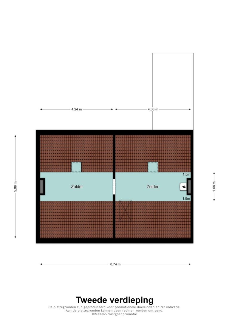 Middels een vlizotrap bereikbare bergzolder met opstelling Radson cv-ketel (1991).