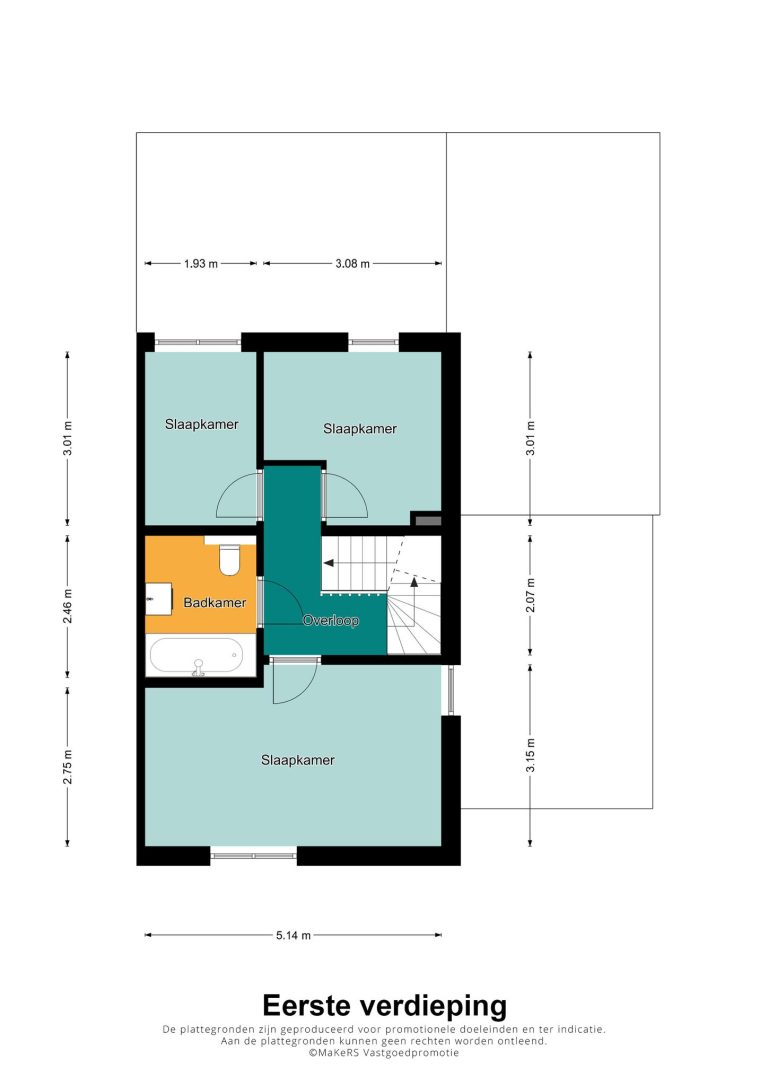 De ouderslaapkamer van ca. 14 m2 is gelegen aan de voorzijde van de woning. De 2 kinderkamers bevinden zich aan de achterzijde.