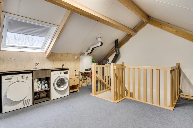 Hier bevindt zich de Nefit HR combiketel (2023), de WTW installatie en de witgoedaansluitingen.