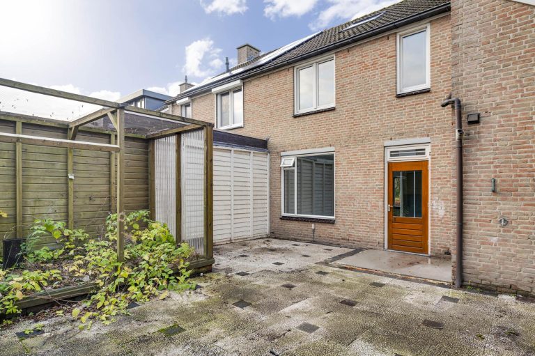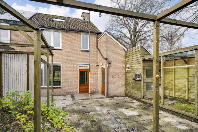 Deze jaren-’80 woning biedt ruimte aan een woonkamer met open keuken, 3 slaapkamers, badkamer, vaste trap naar zolder met mogelijkheid voor een 4e slaapkamer, garage en op het zuidoosten gelegen achtertuin.
