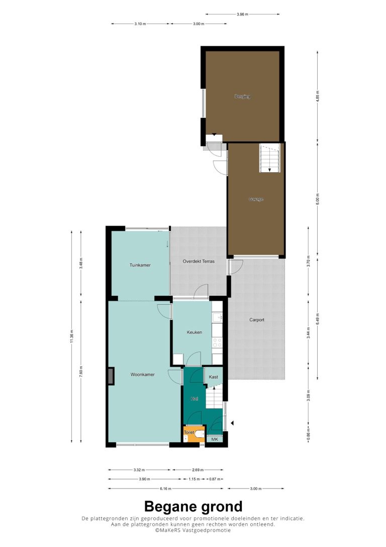 Deze begin jaren -’70 gebouwde woning biedt op de begane grond ruimte aan de woonkamer met aangebouwde tuinkamer (totaal ca. 40m2), en de gesloten keuken. Op de verdieping bevinden zich 3 slaapkamers, de badkamer en een wasruimte. De garage is aangebouwde met een onderkelderde bergruimte (ca. 4,85 bij 4m) die extra mogelijkheden biedt voor hobby of werk aan huis.