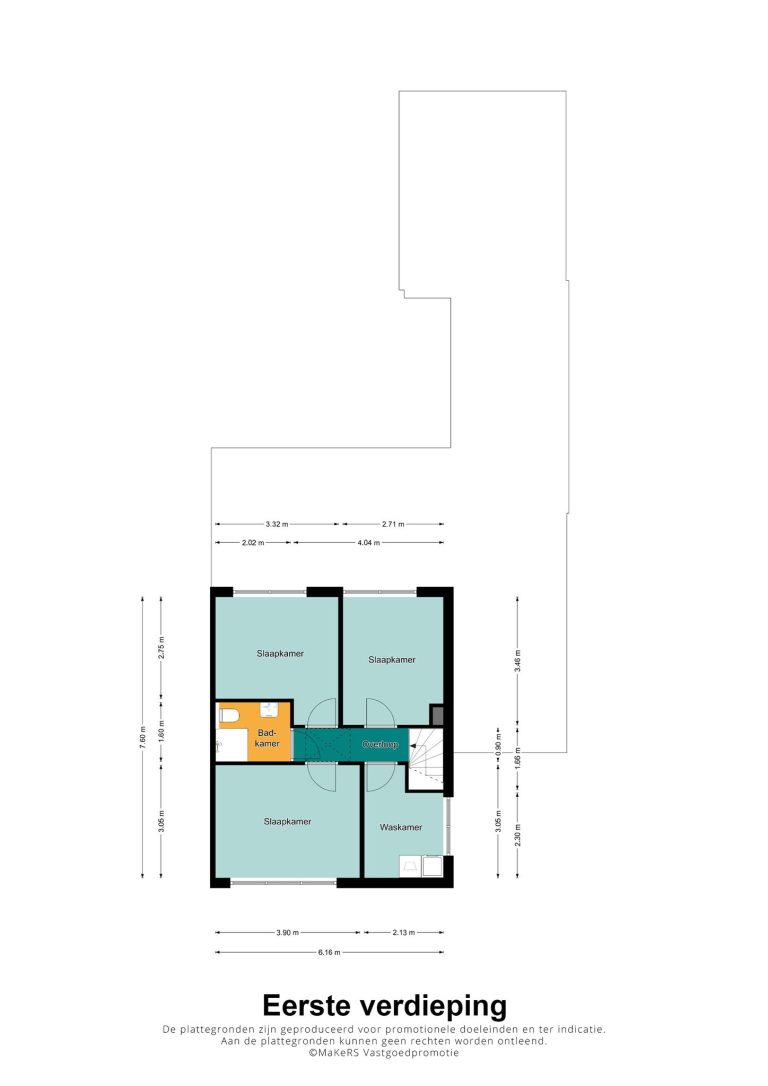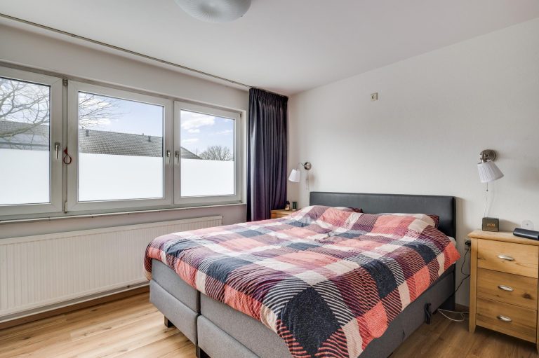 De ouderslaapkamer (ca. 3,9 bij 3m) is gelegen aan de voorzijde. De kinderkamers (ca. 3,3 bij 2,75m en 2,7 bij 3,45m) zijn gelegen aan de achterzijde. De 4e slaapkamer is in gebruik als wasruimte hier bevinden zich de aansluitingen voor wasmachine en droger en diverse bergkasten. De badkamer is geheel licht betegeld, voorzien van douchecabine, toilet en wastafelmeubel.
