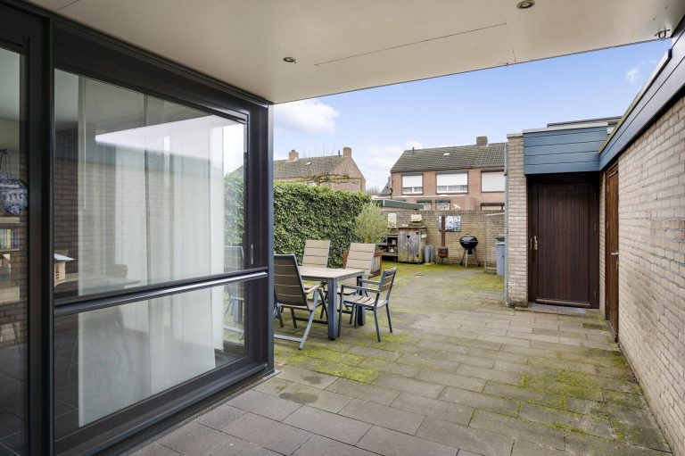 De voortuin is netjes aangelegd. Aan de rechterzijde van de woning bevindt zich een royale oprit met carport en garage (ca. 18m2) De oprit biedt ruimte voor meerdere auto’s. Achter de garage is een extra berging met kelder (bereikbaar vanuit garage) gebouwd. Deze berging is gebouwd in spouw en biedt mogelijkheden voor hobby, kantoor of thuiswerken.
