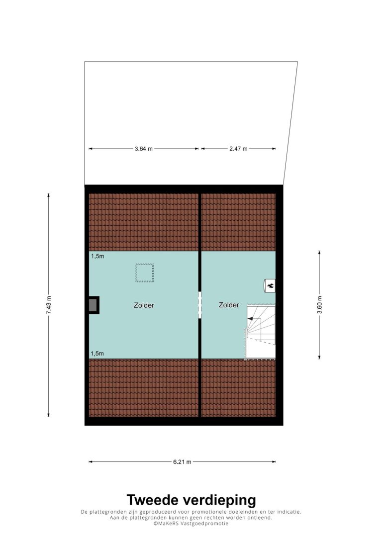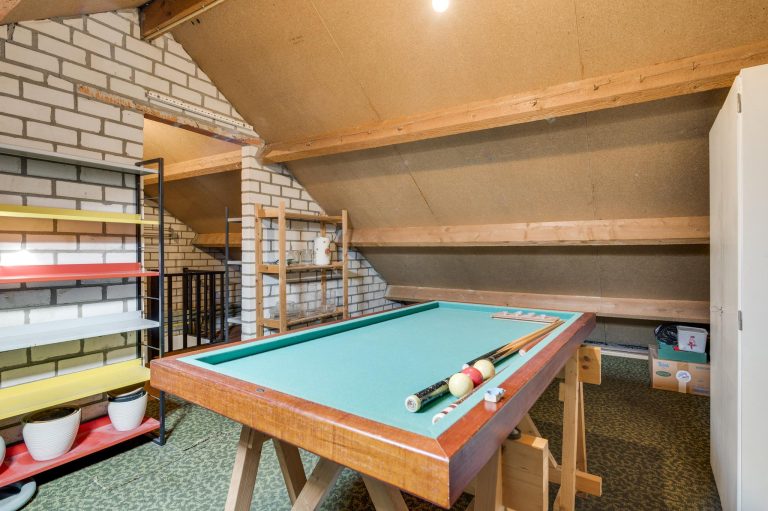 Deze kan worden gebruikt als slaap-, werk- of hobbykamer. Achter de knieschotten bevinden zich nog bergruimtes.