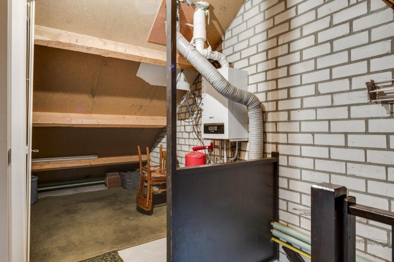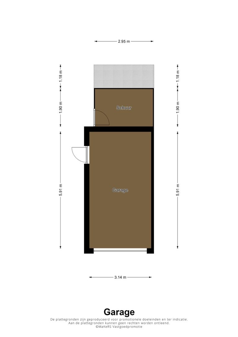 De garage is ruim, ca. 5,9 x 3,15m, gelegen aan de achterzijde van het perceel met erachter nog een houten tuinberging. Voor de garage bevindt zich een royale oprit. Hier kunt u 3 auto’s parkeren op eigen terrein.