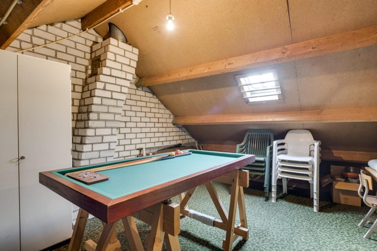 Via vaste trap komt u op de tweede verdieping, deze is opgedeeld in een overloop met bergruimte en een extra kamer.
