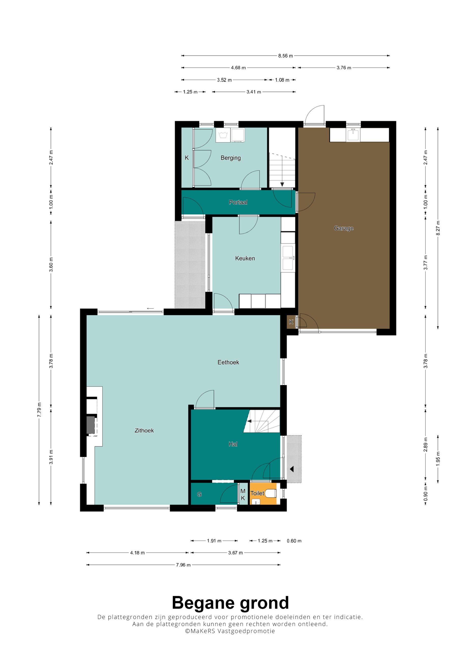 Aansluitend een portaal dat toegang geeft tot de ruime bijkeuken met diverse muurkasten en aansluitingen voor het witgoed. Ook de kelder en de ruime garage zijn vanuit dit portaal bereikbaar.