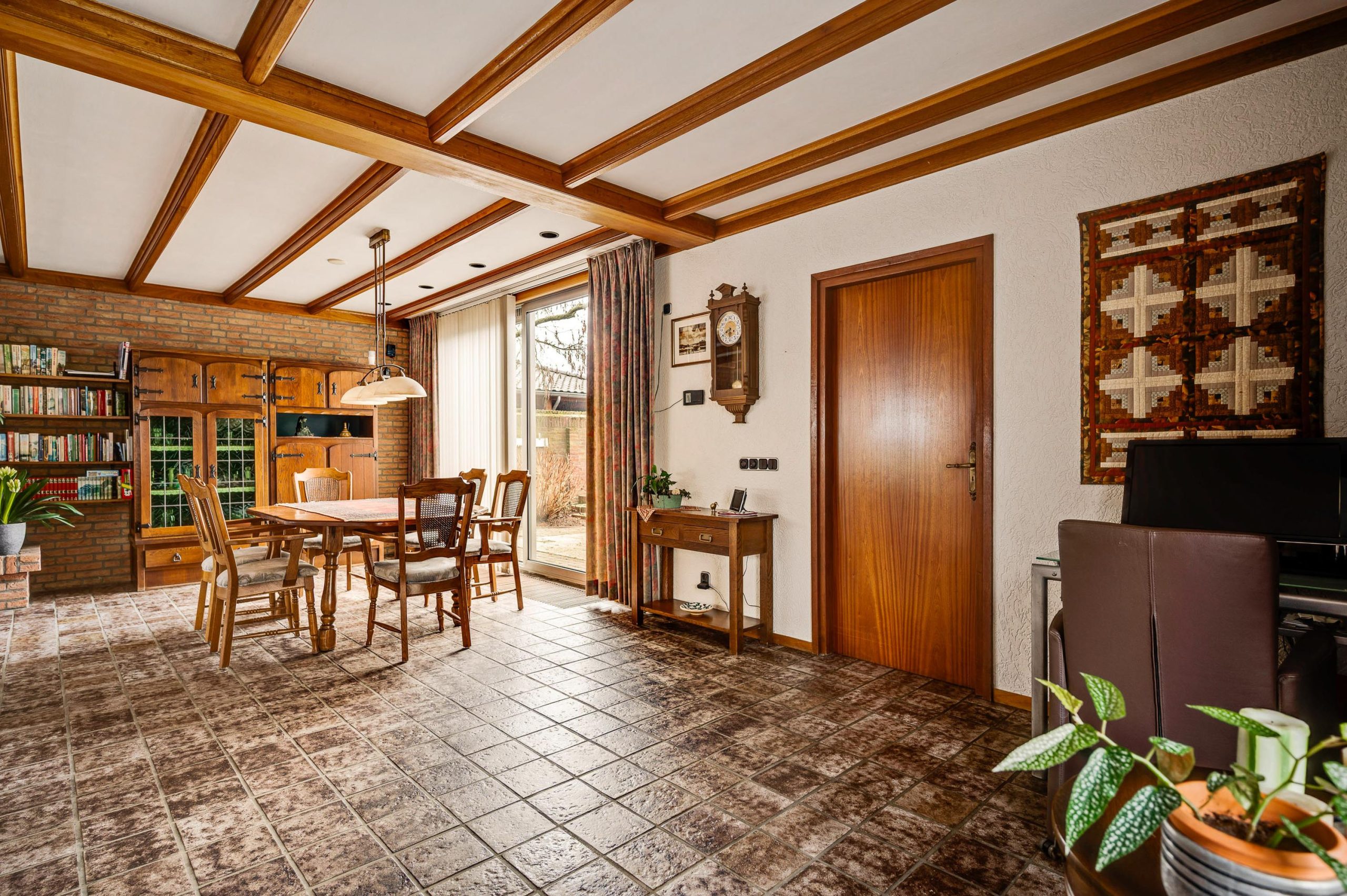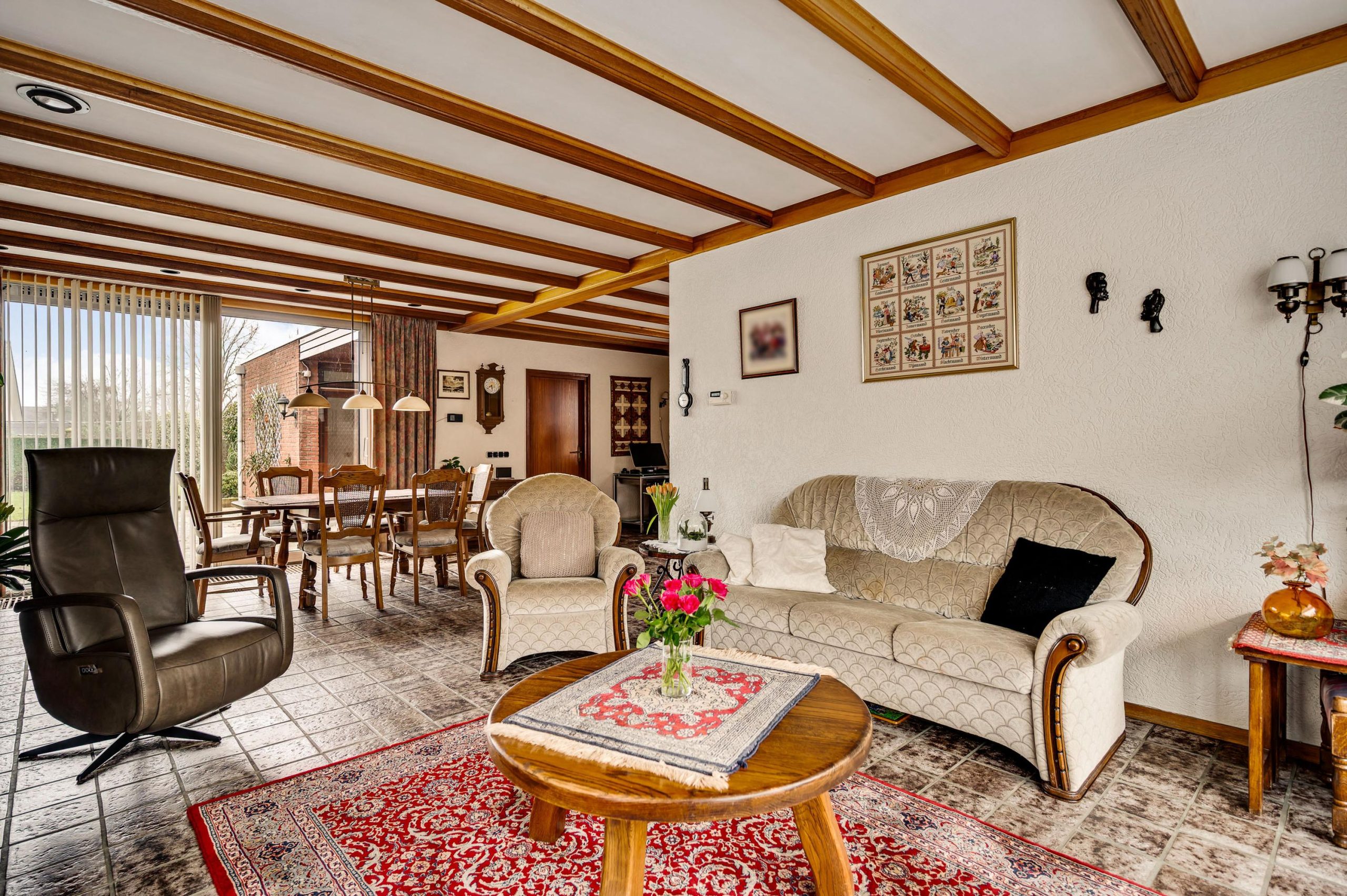 Via de hal met toiletruimte en meterkast betreed je de woning. Vanuit hier kom je in de ruime L-vormige woonkamer. In de woonkamer geniet je van veel daglicht, dankzij de grote raampartijen. De open haard zorgt voor extra sfeer en warmte.