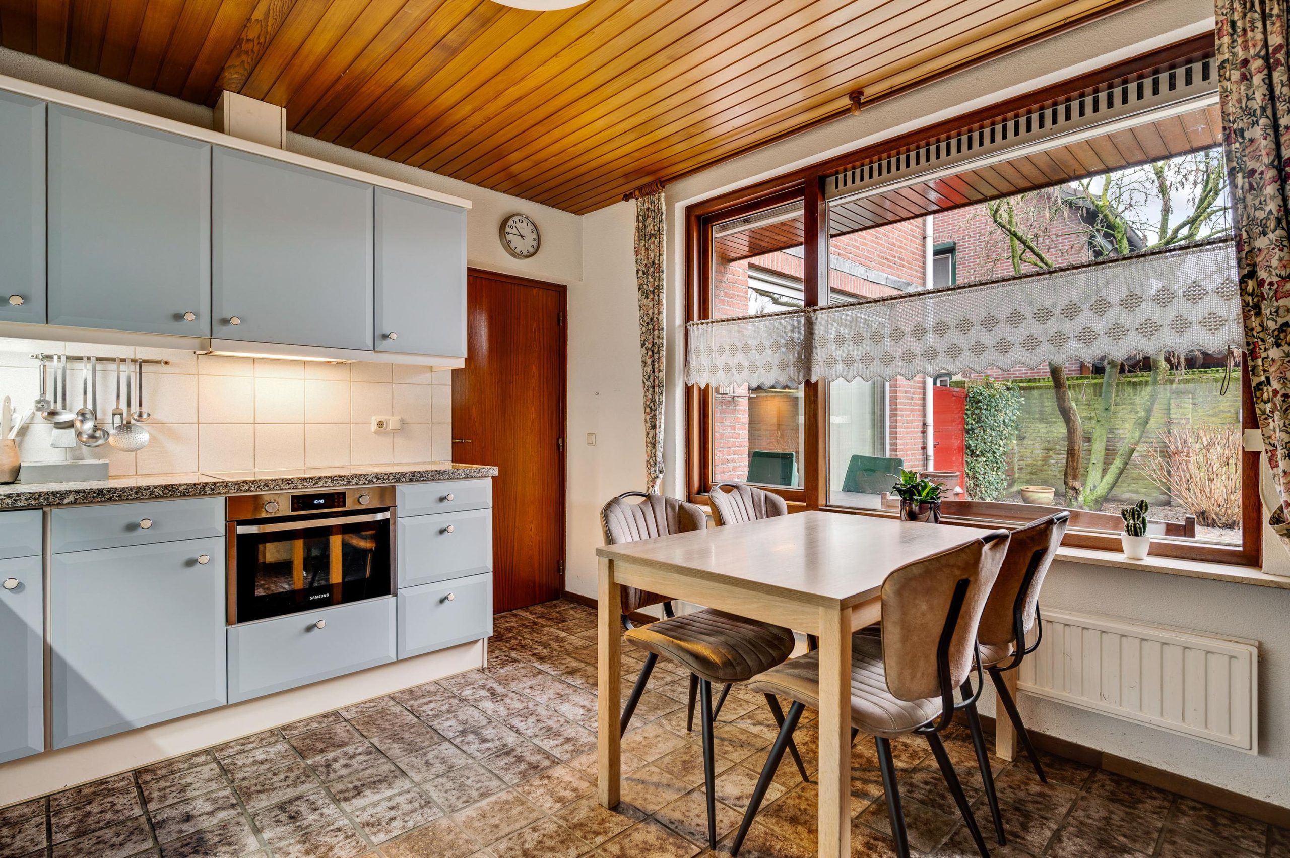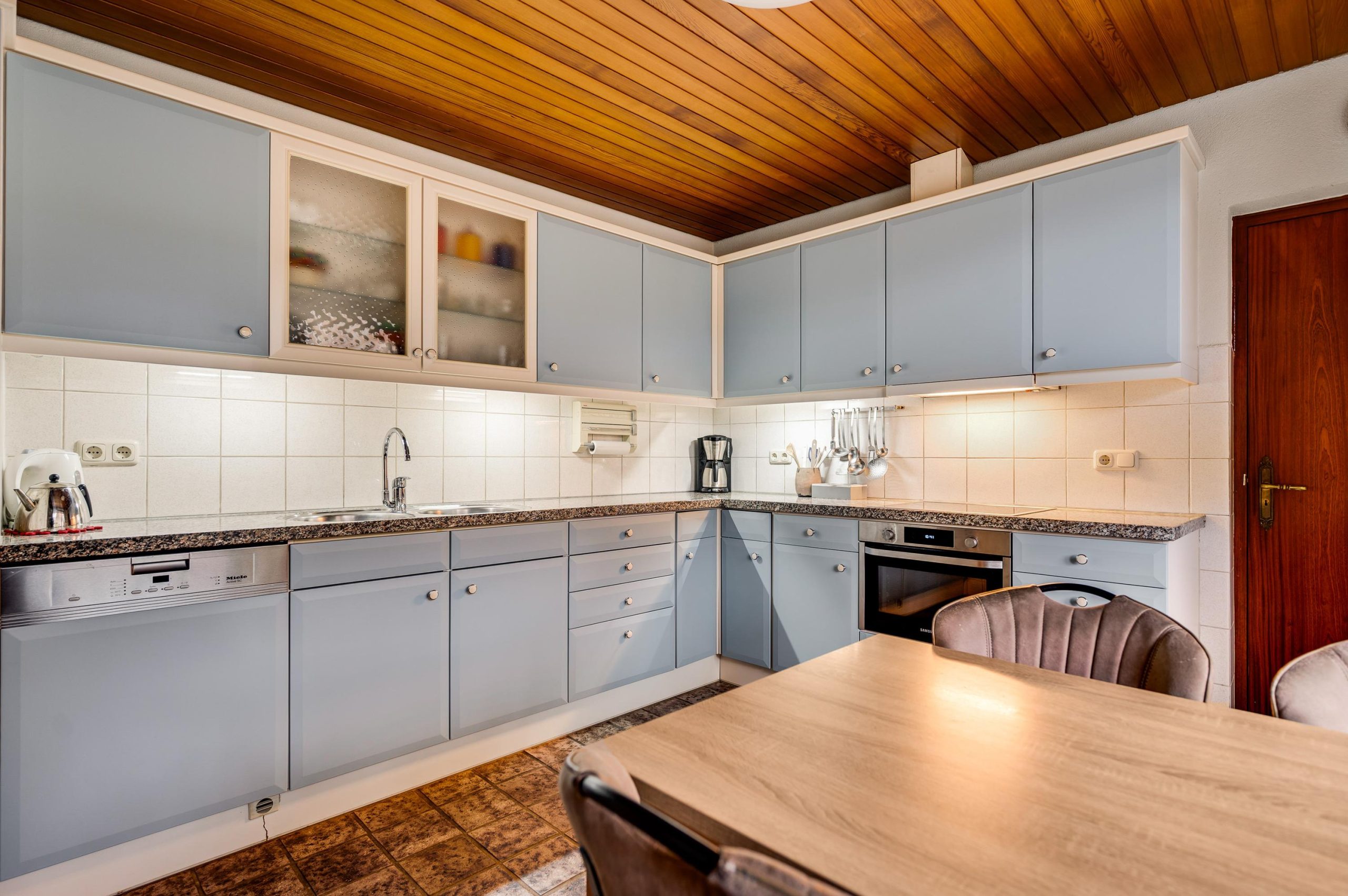 Aan de achterzijde van de woning bevindt zich de leefkeuken met fijn tuincontact en voldoende ruimte voor een eettafel. De keuken is voorzien van inbouwkeuken met keramische kookplaat, afzuigkap, combi-oven, koelkast en vaatwasser.