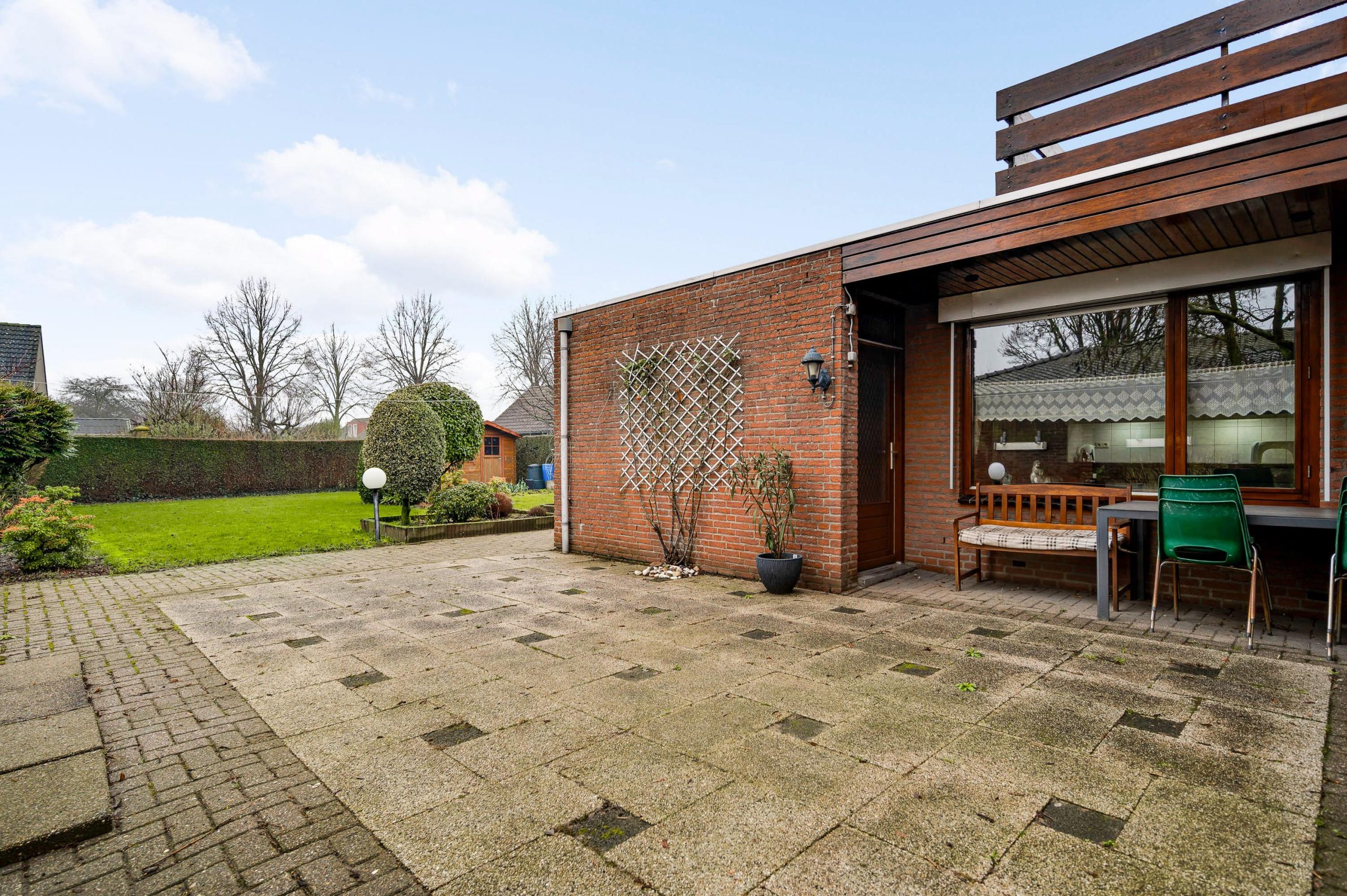 De woning beschikt over een grote tuin met veel groen, een groot gazon, borders en een tuinhuisje. Een fijne plek om te ontspannen, te spelen en te genieten van rust en privacy. Vanuit de tuin is er directe toegang tot de garage. Daarnaast beschikt de woning over een vrije achterom.