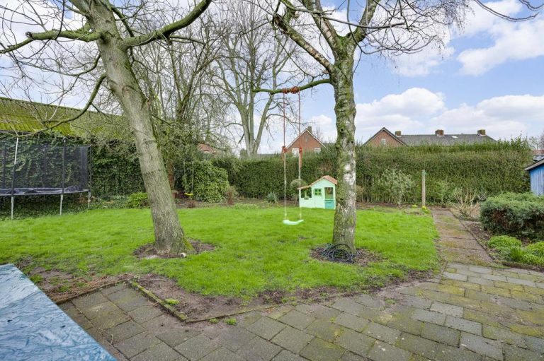 De woning heeft een eigen oprit en vrijstaande garage. De tuin rechts van de oprit hoort niet bij het gehuurde. De achtertuin met privacy heeft een terras, gazon en volwassen beplanting.