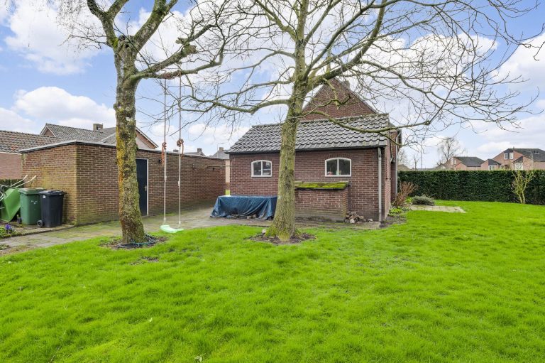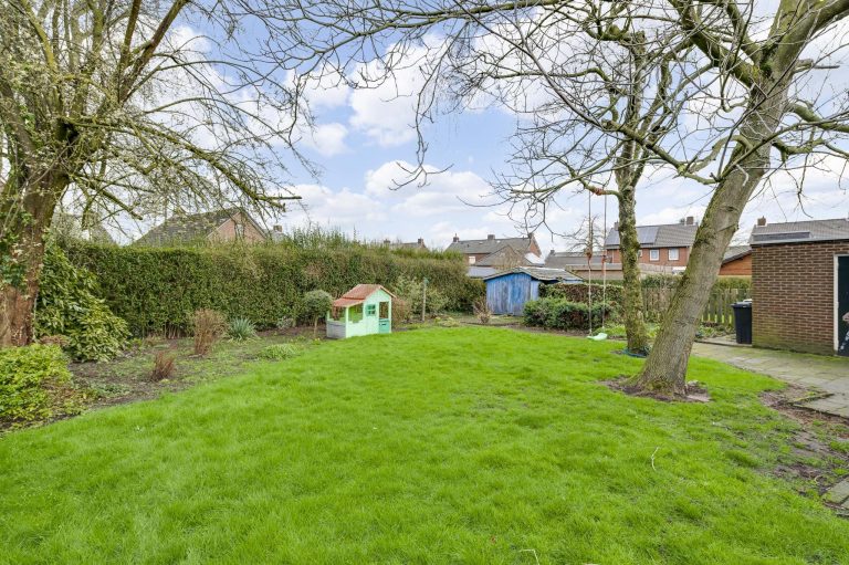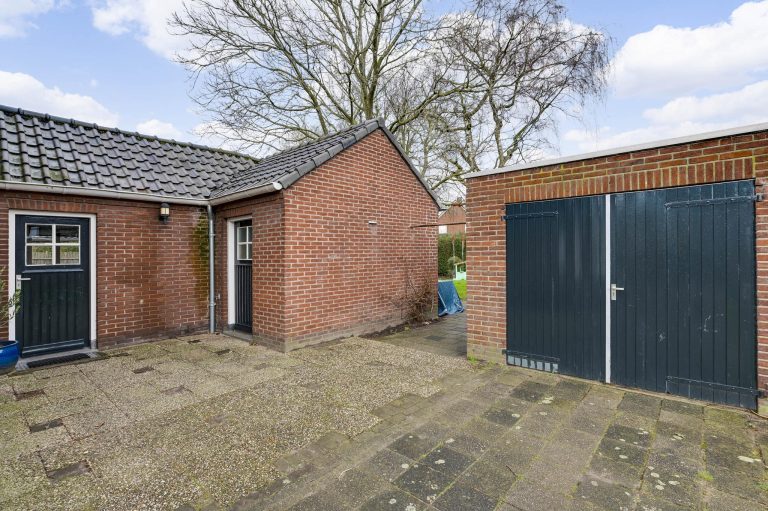 De woning heeft een eigen oprit en vrijstaande garage. De tuin rechts van de oprit hoort niet bij het gehuurde. De achtertuin met privacy heeft een terras, gazon en volwassen beplanting.