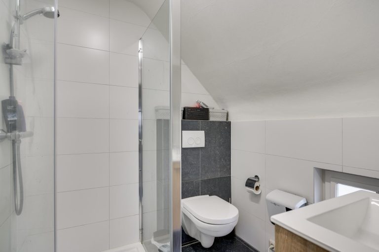 3 slaapkamers, waarvan twee met muurkast. De badkamer heeft een douche, toilet en vaste wastafel met meubel.