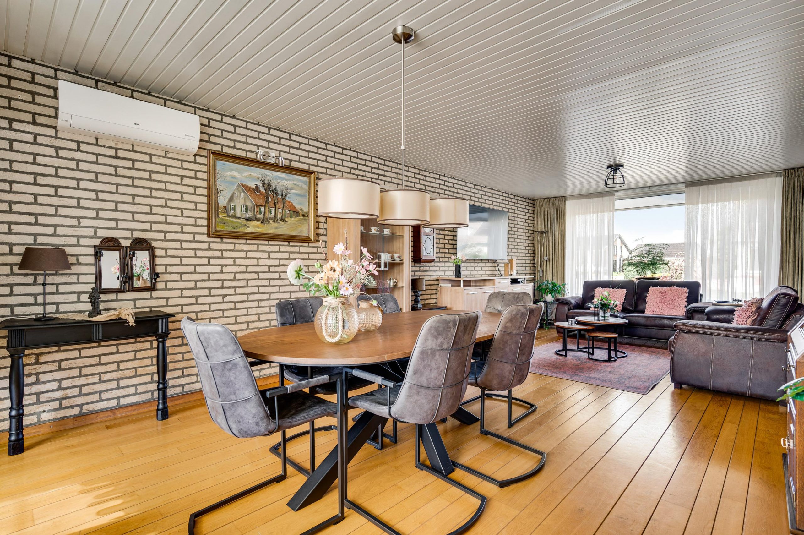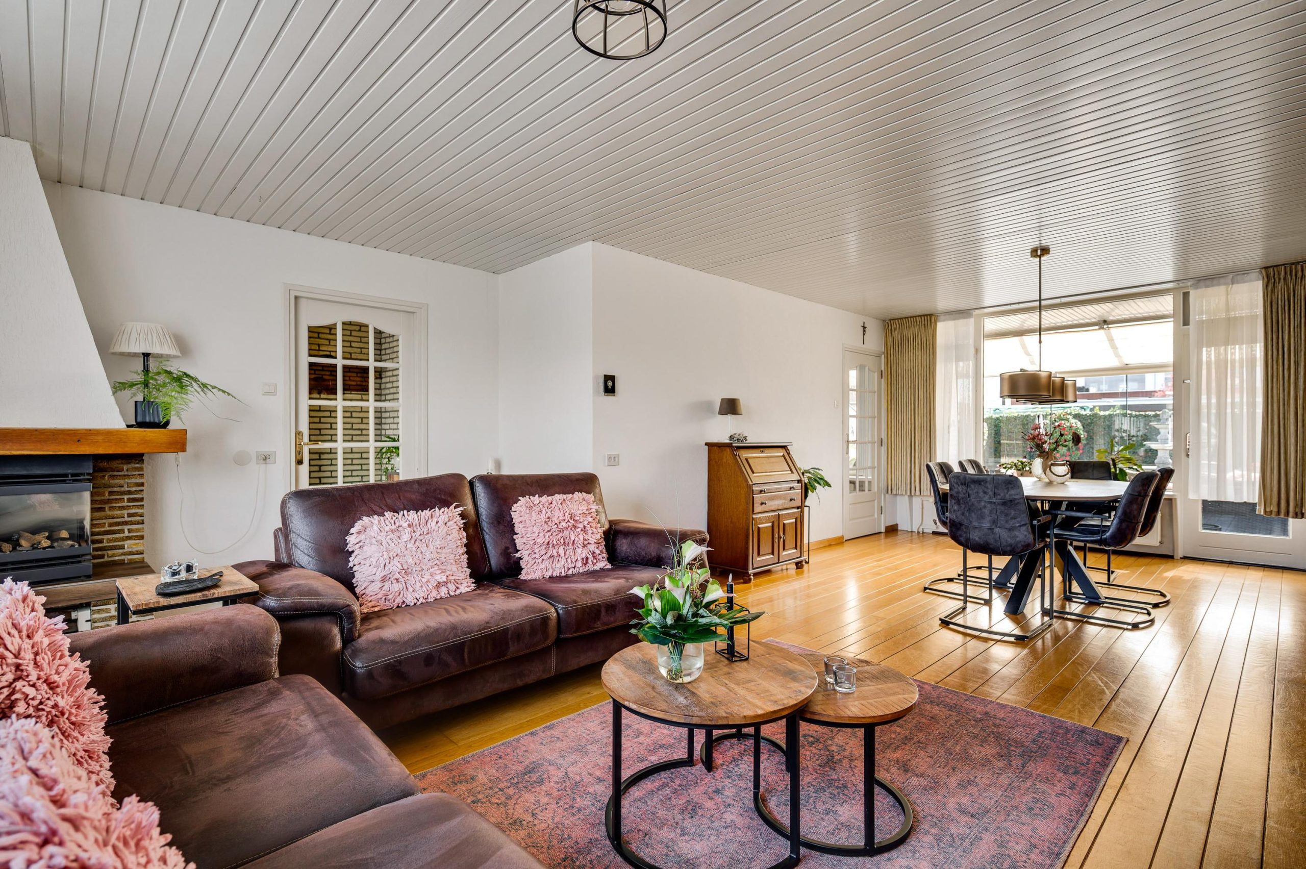 De ruime woonkamer is een fijne, lichte leefruimte dankzij de grote raampartijen aan zowel de voor- als achterzijde. Hier geniet u van een prettig uitzicht op de tuin en veel natuurlijke lichtinval. De woonkamer is bovendien voorzien van een gashaard en een airco (2022), wat zorgt voor extra comfort in ieder seizoen.