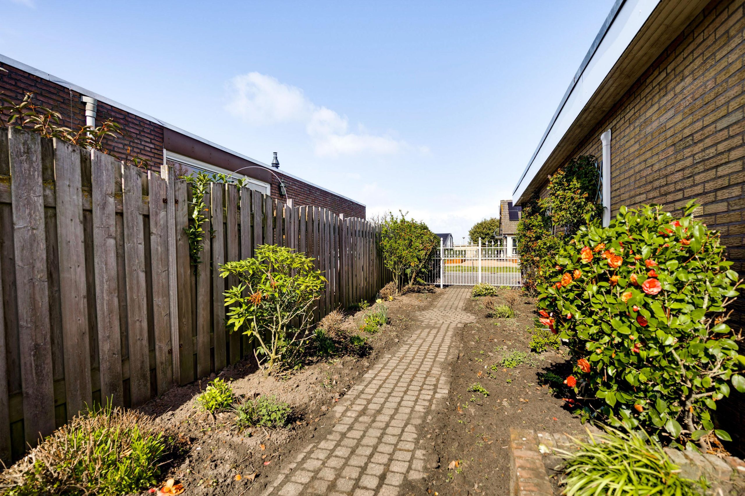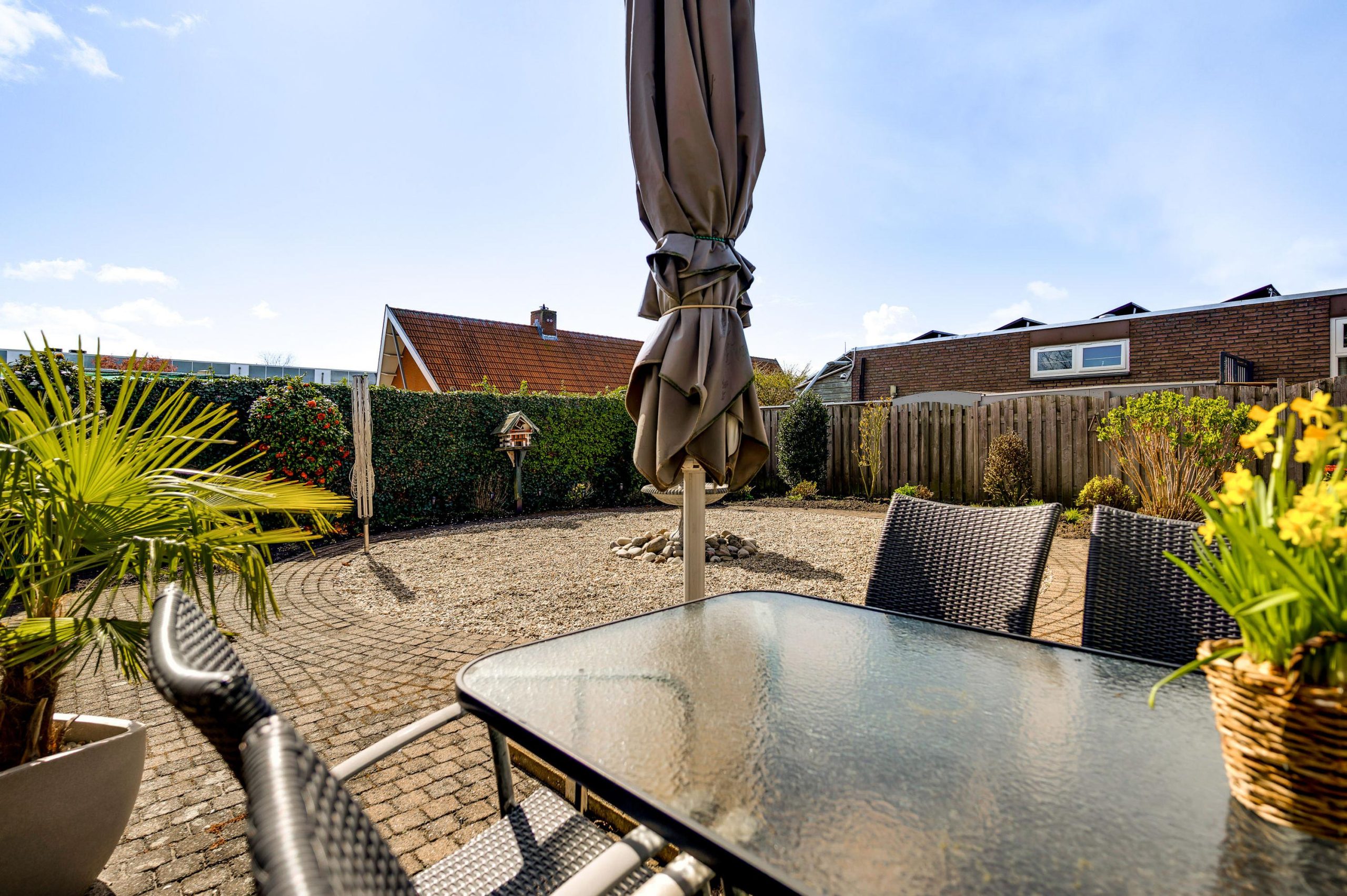 De achtertuin op het zuiden is onderhoudsarm aangelegd en biedt veel privacy – een heerlijke plek om in alle rust van het buitenleven te genieten.