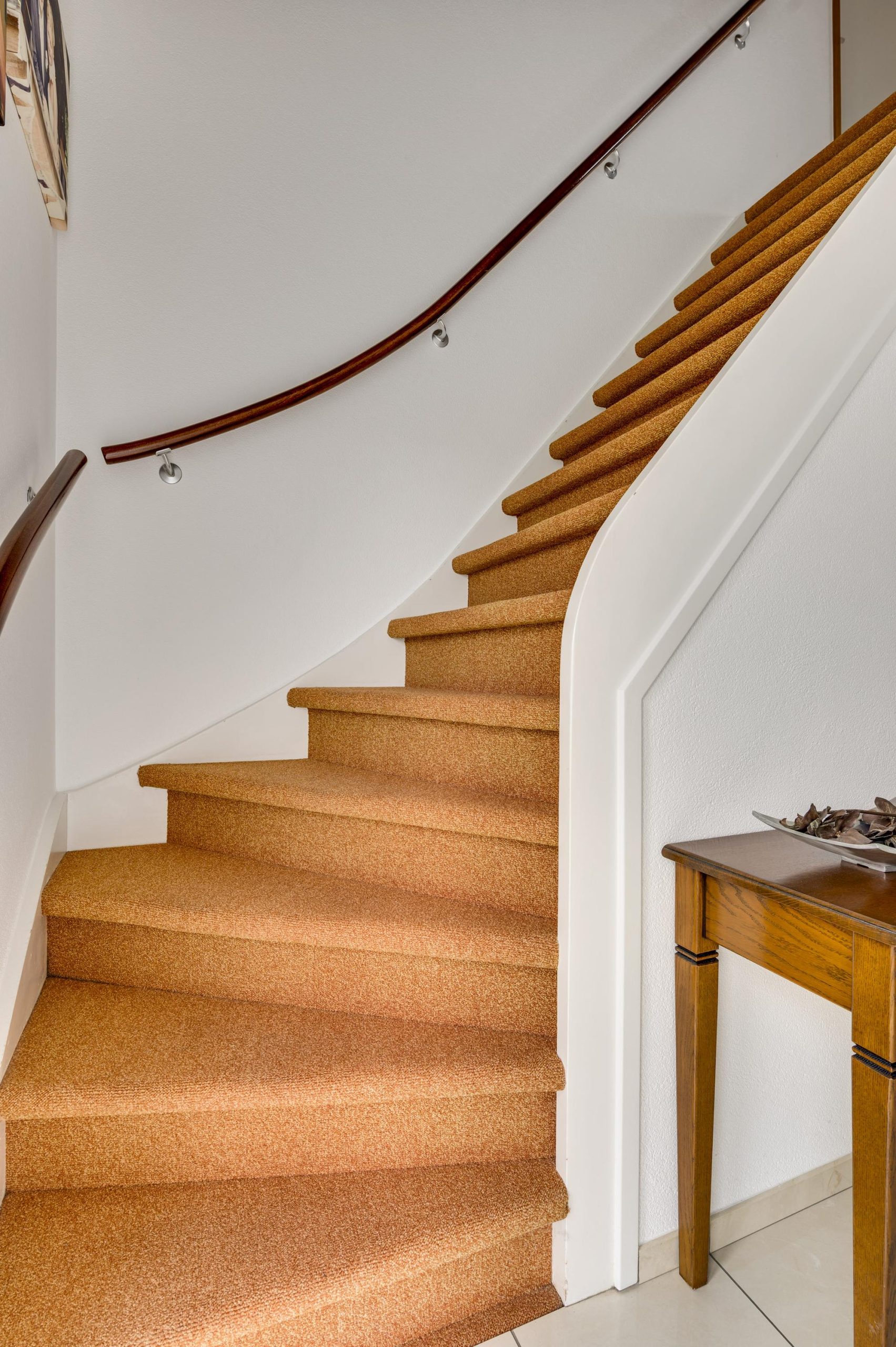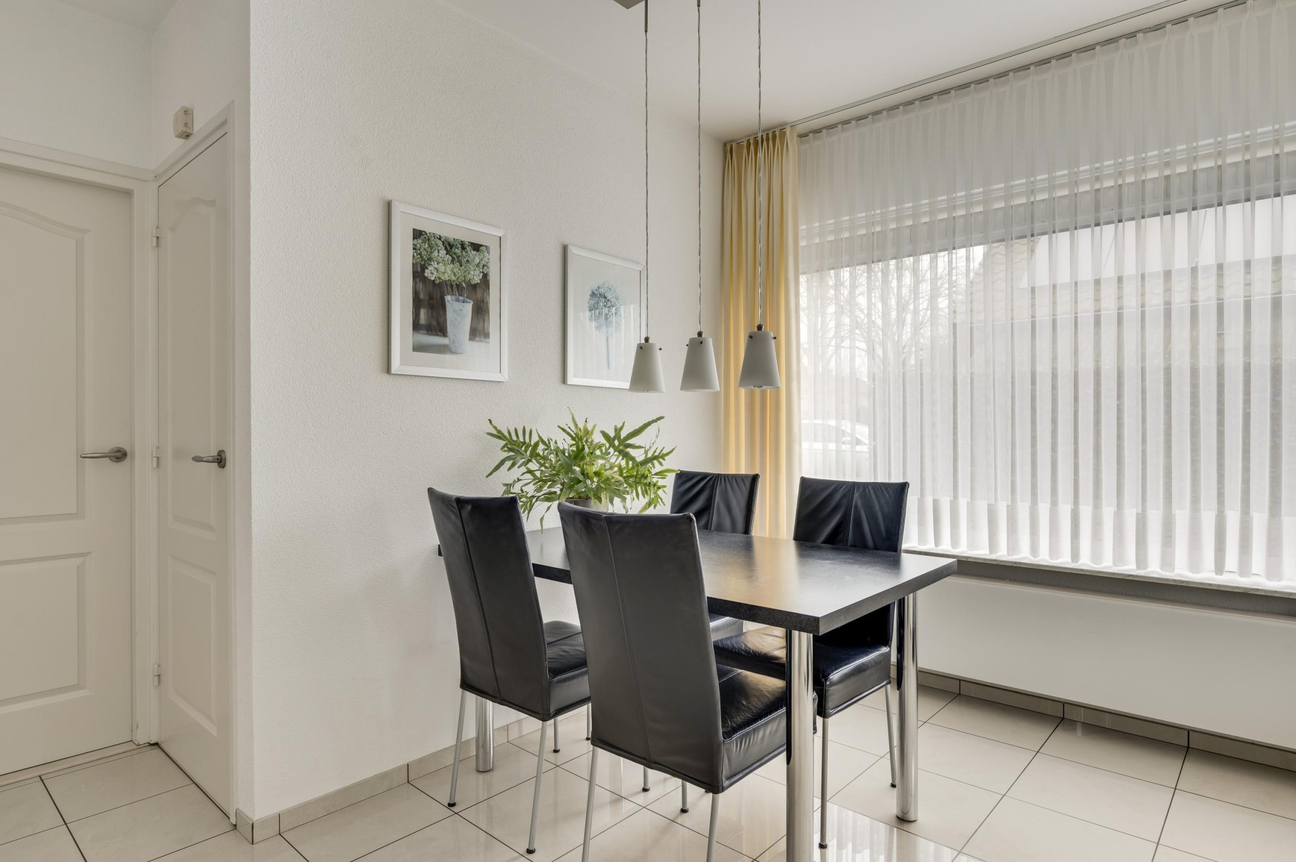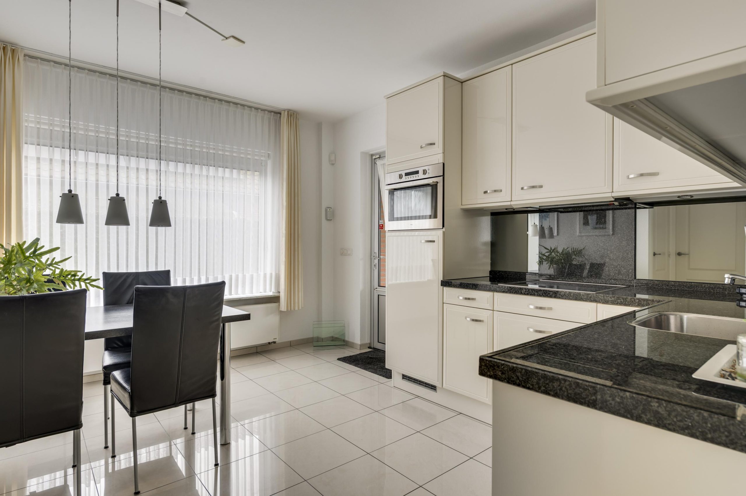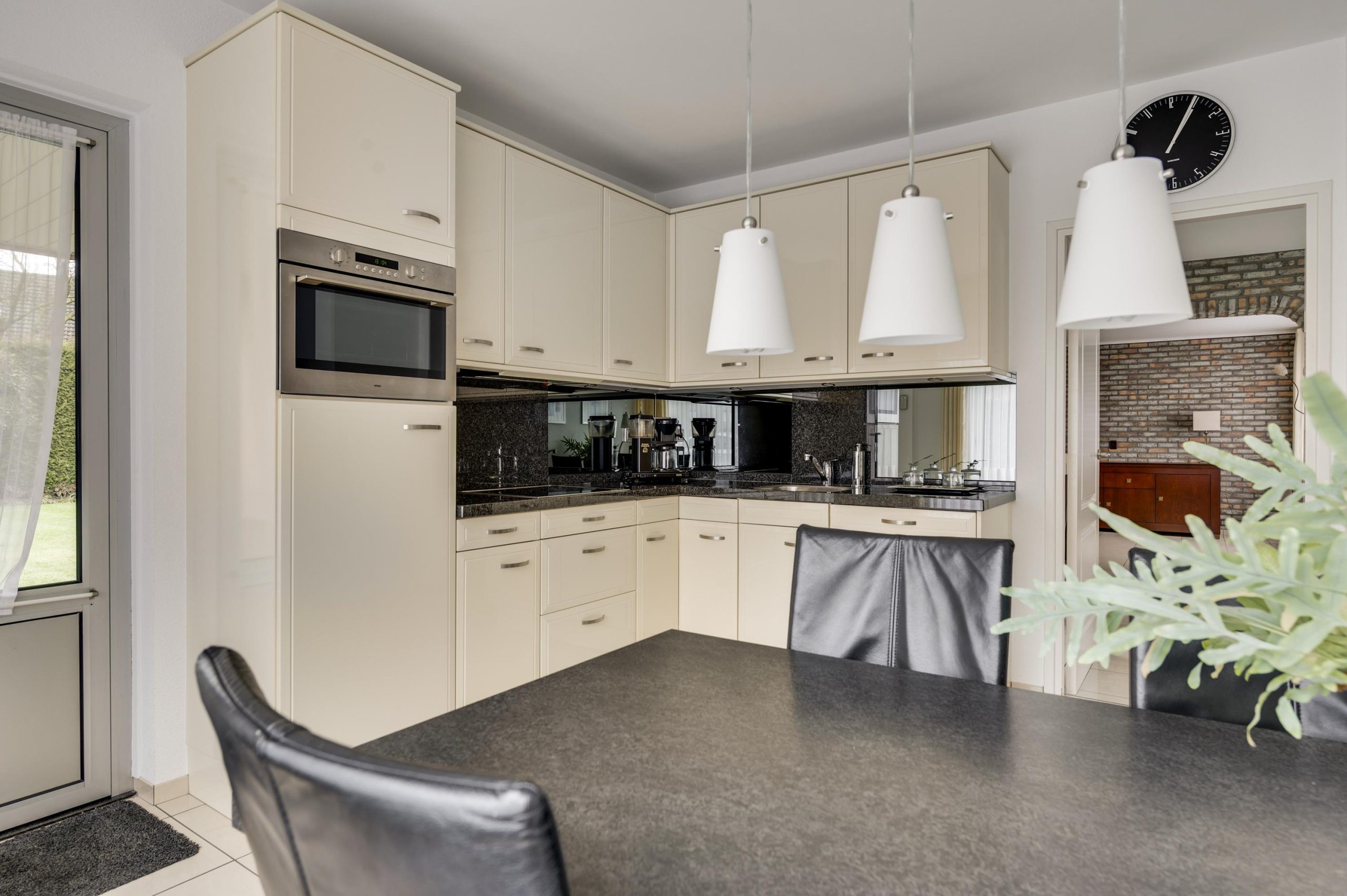 De trapkast biedt extra ruimte voor opslag. Vanuit de keuken een deur naar de achtertuin.