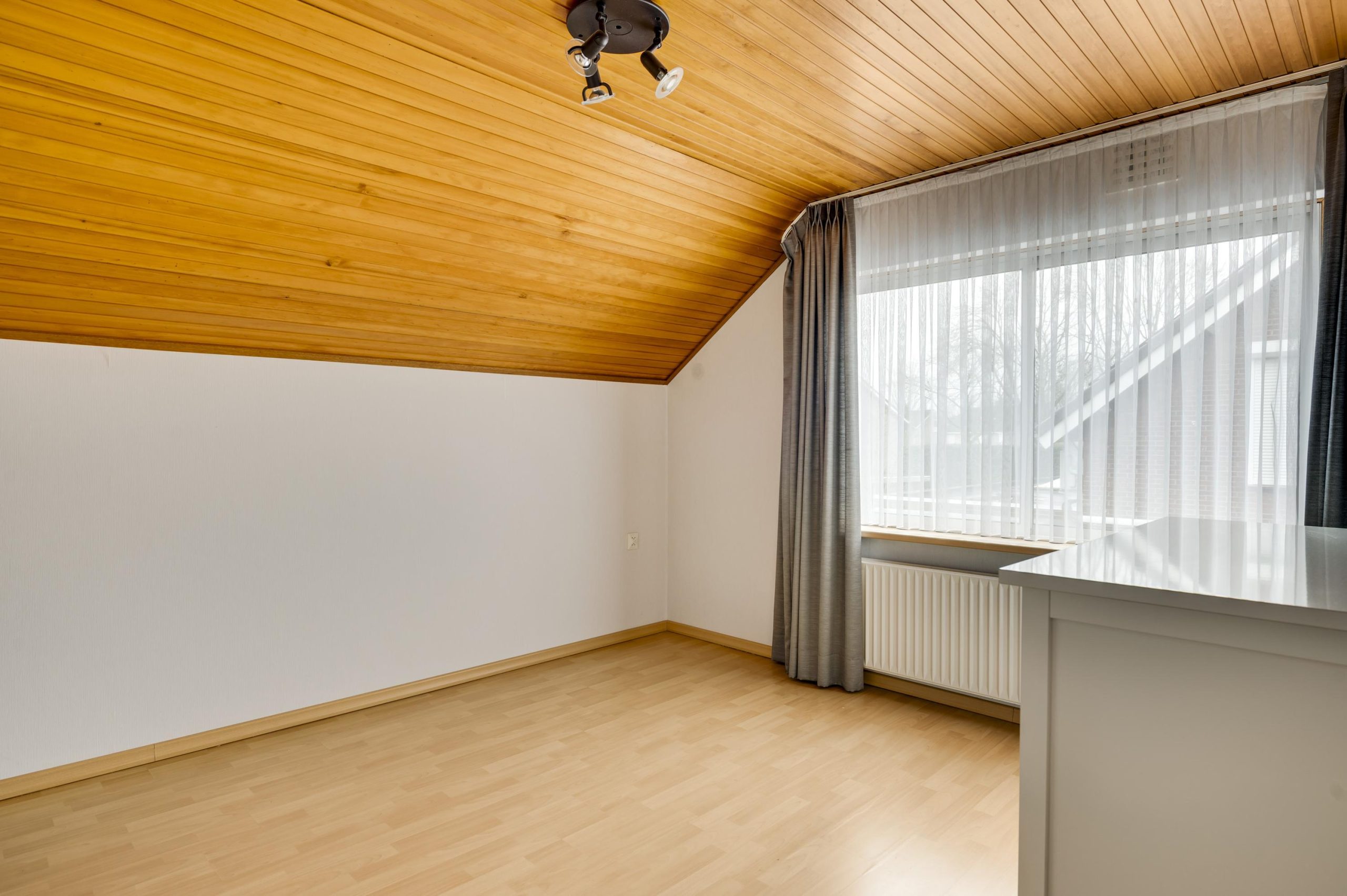 De woonkamer heeft veel daglicht dankzij de grote raampartijen aan voor- en achterzijde en is bovendien aan de zijkant uitgebouwd. Deze uitbouw biedt toegang tot een extra kamer, ideaal als thuiswerkplek, speelkamer of hobbyruimte. Via de schuifpui aan de achterzijde loopt u direct door naar de ruime overkapping, waardoor binnen en buiten mooi in elkaar overlopen.